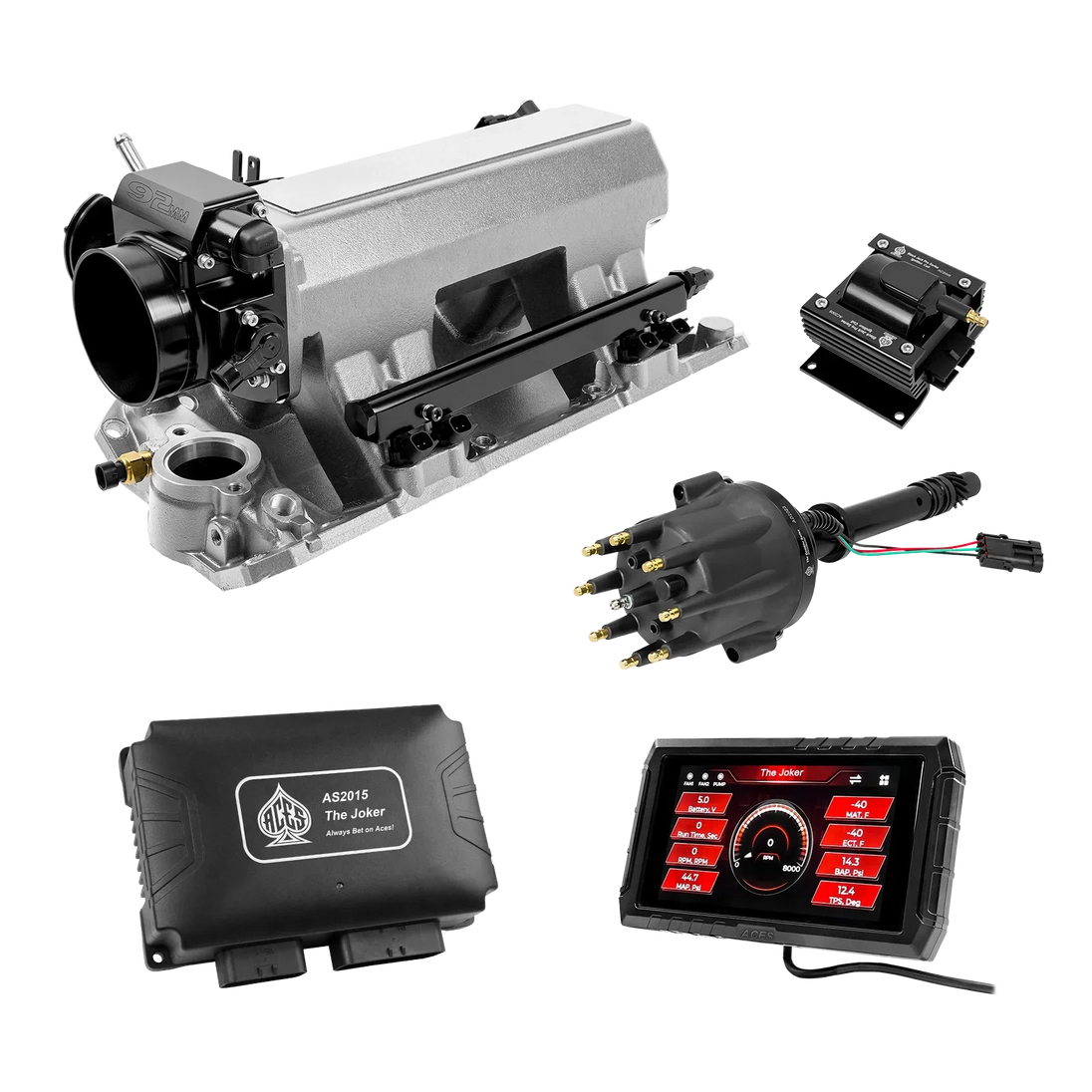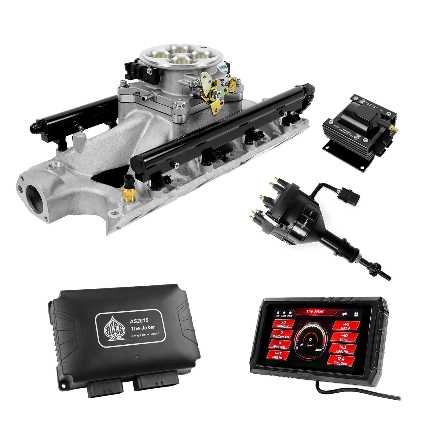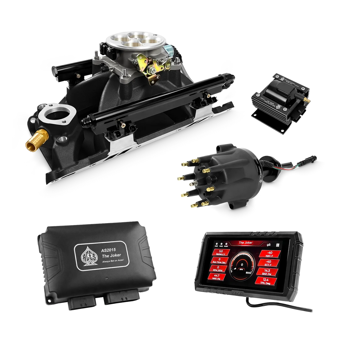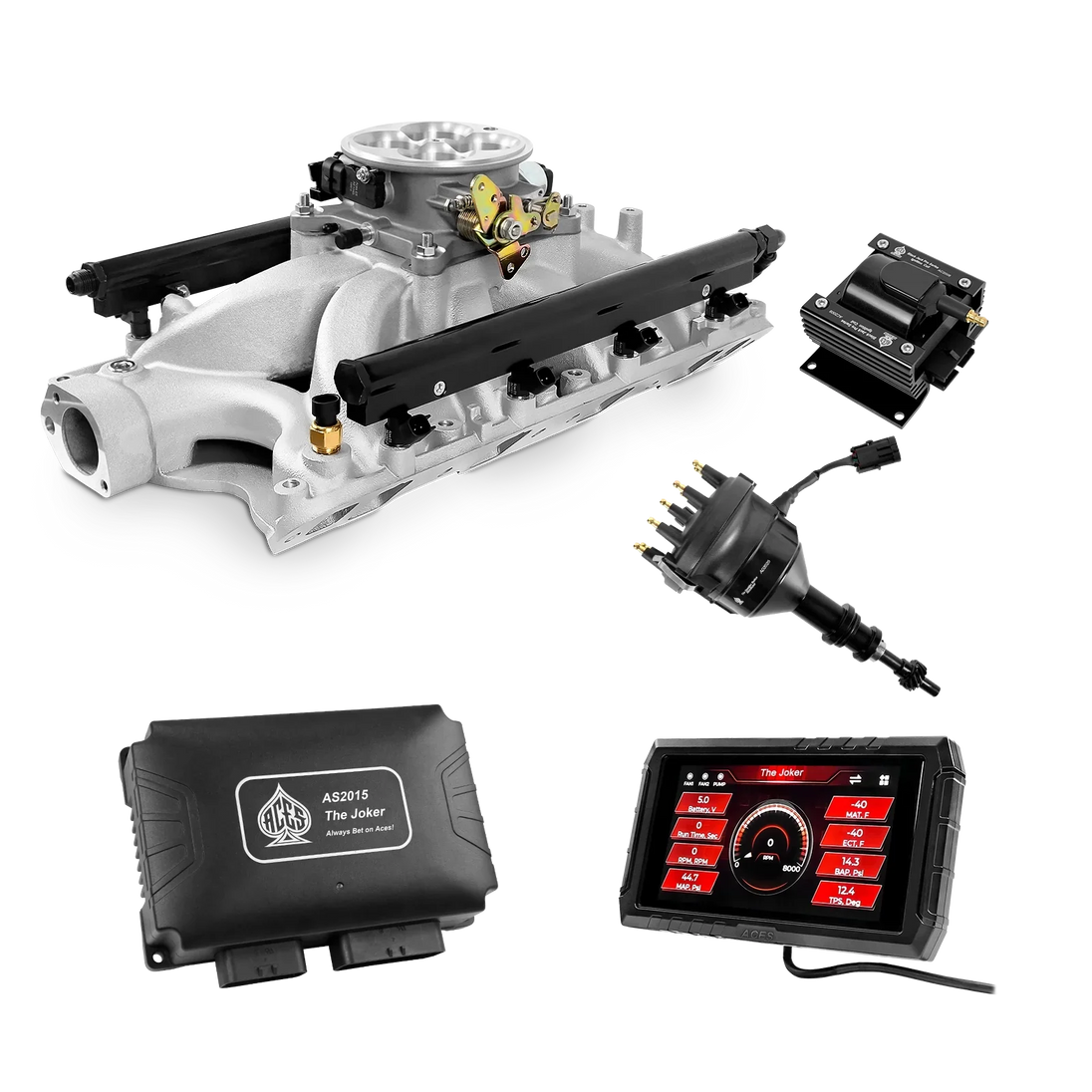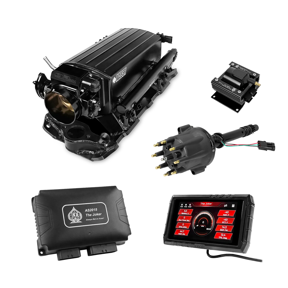 Take your high-performance or boosted V8 to the next level with ACES EFI’s Joker EFI/CDI—the most powerful Multi-Port EFI system on the market! The Joker is the only EFI system that integrates a Digital Capacitive Discharge Ignition (DCDI) system inside the ECU, delivering unmatched spark energy, precision, and control. Whether you're running high compression, forced induction, or aggressive racing setups, the Joker’s high-voltage CDI system ensures maximum power and efficiency.