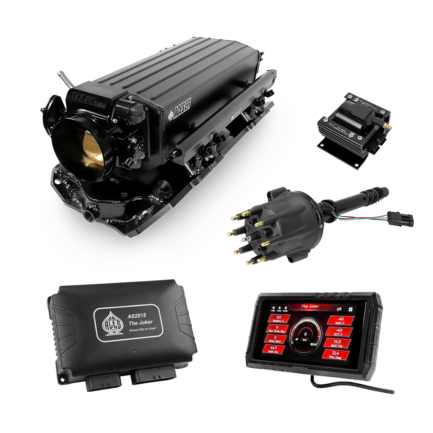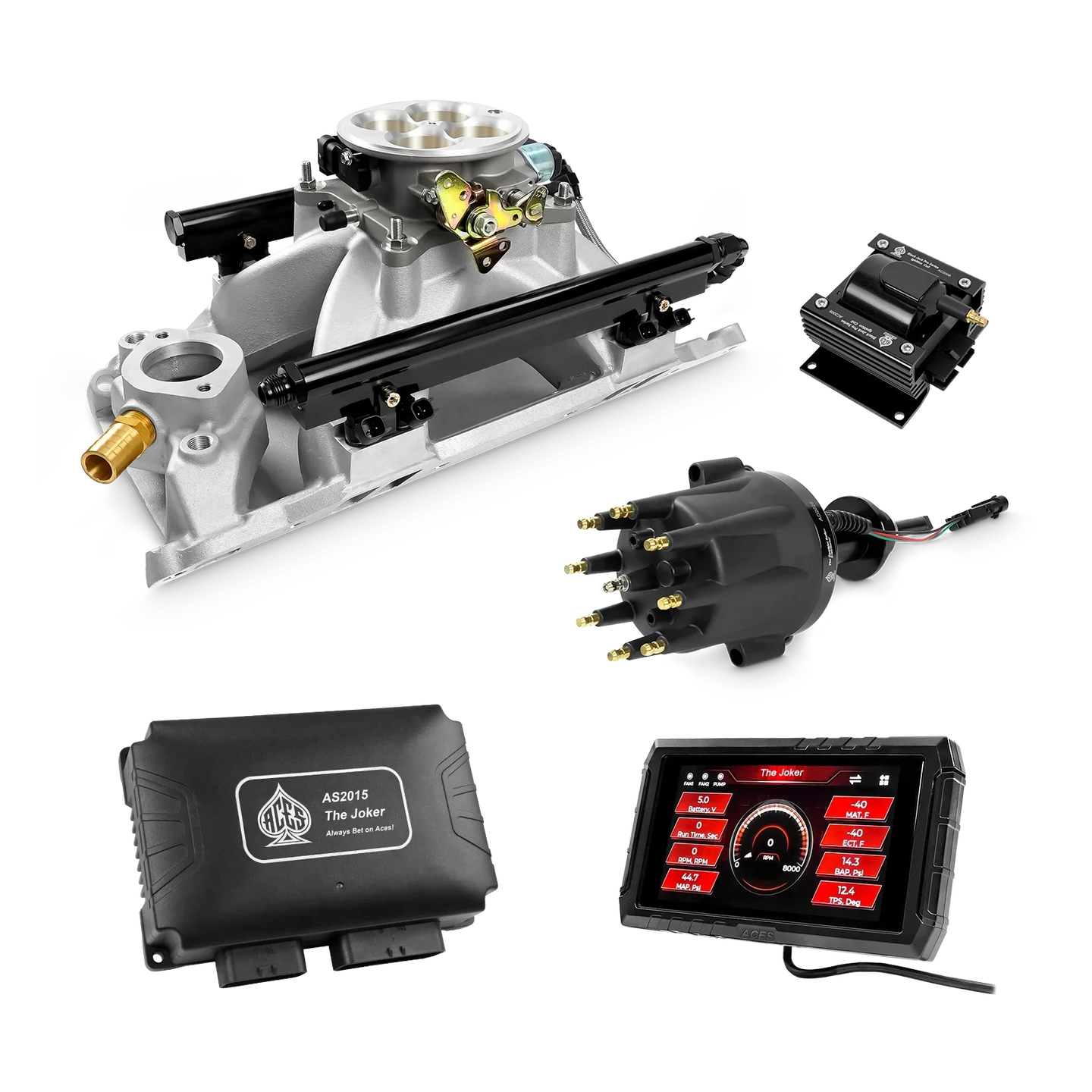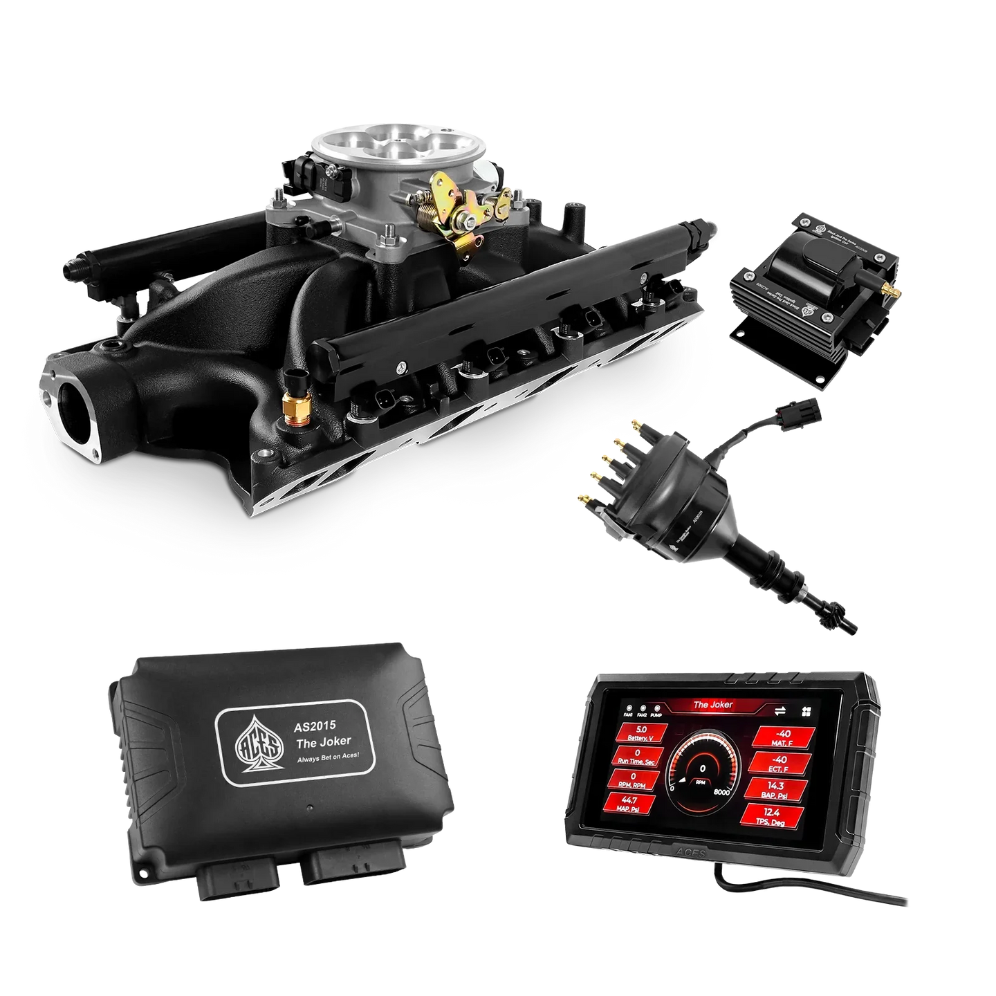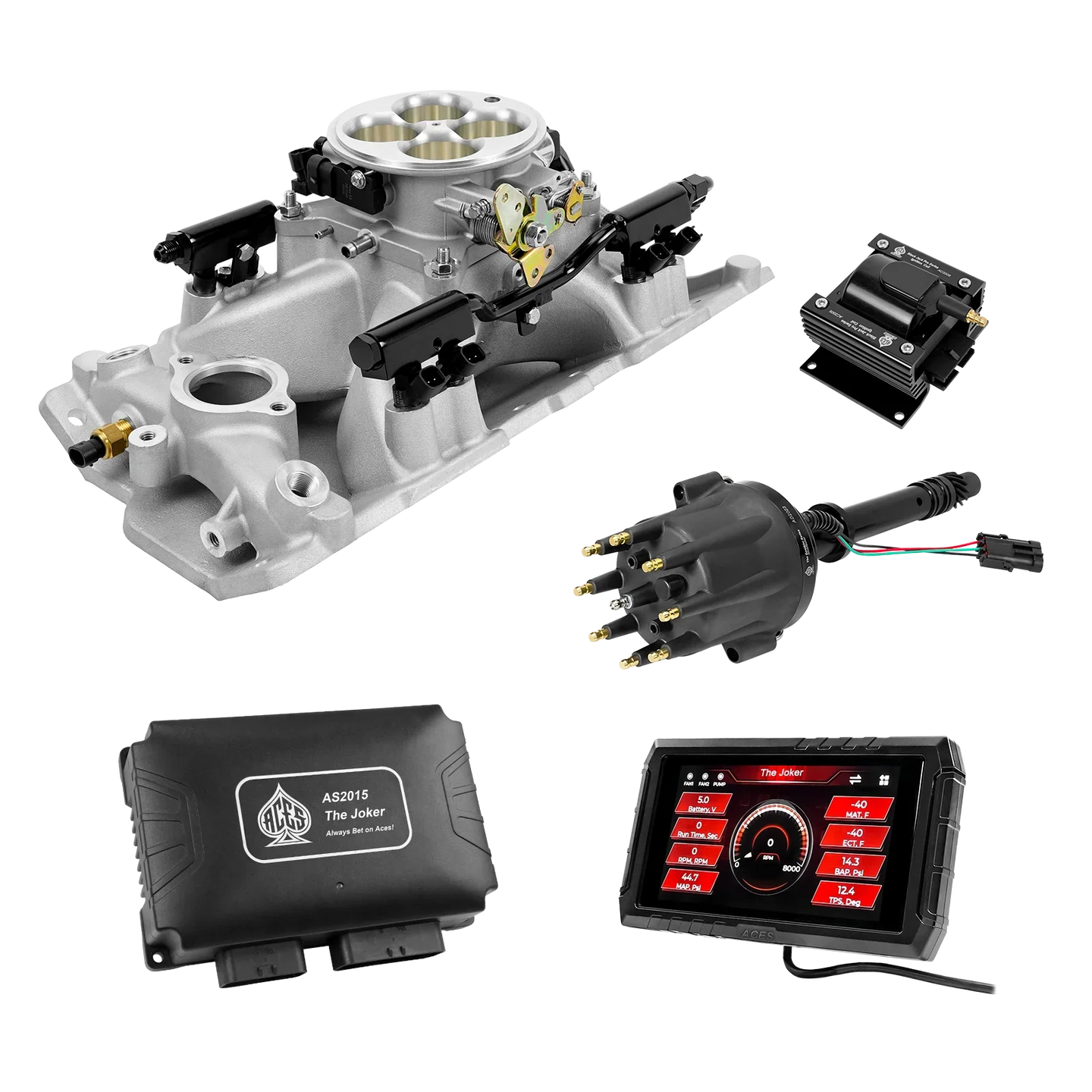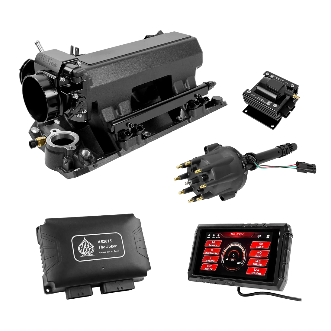 Take your high-performance or boosted V8 to the next level with ACES EFI’s Joker EFI/CDI—the most powerful Multi-Port EFI system on the market! The Joker is the only EFI system that integrates a Digital Capacitive Discharge Ignition (DCDI) system inside the ECU, delivering unmatched spark energy, precision, and control. Whether you're running high compression, forced induction, or aggressive racing setups, the Joker’s high-voltage CDI system ensures maximum power and efficiency.