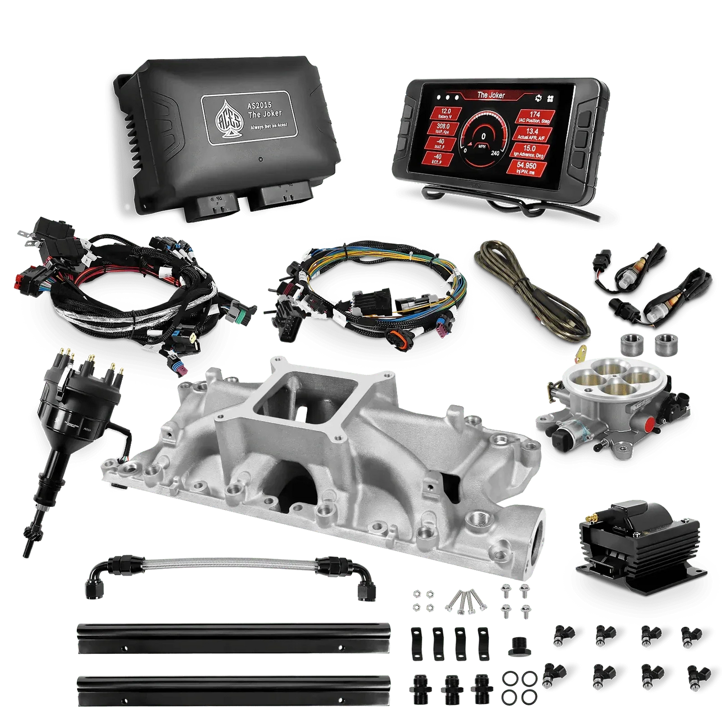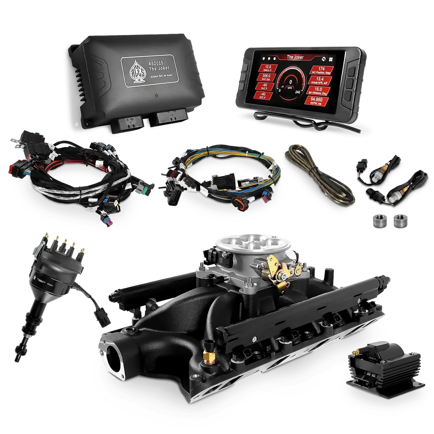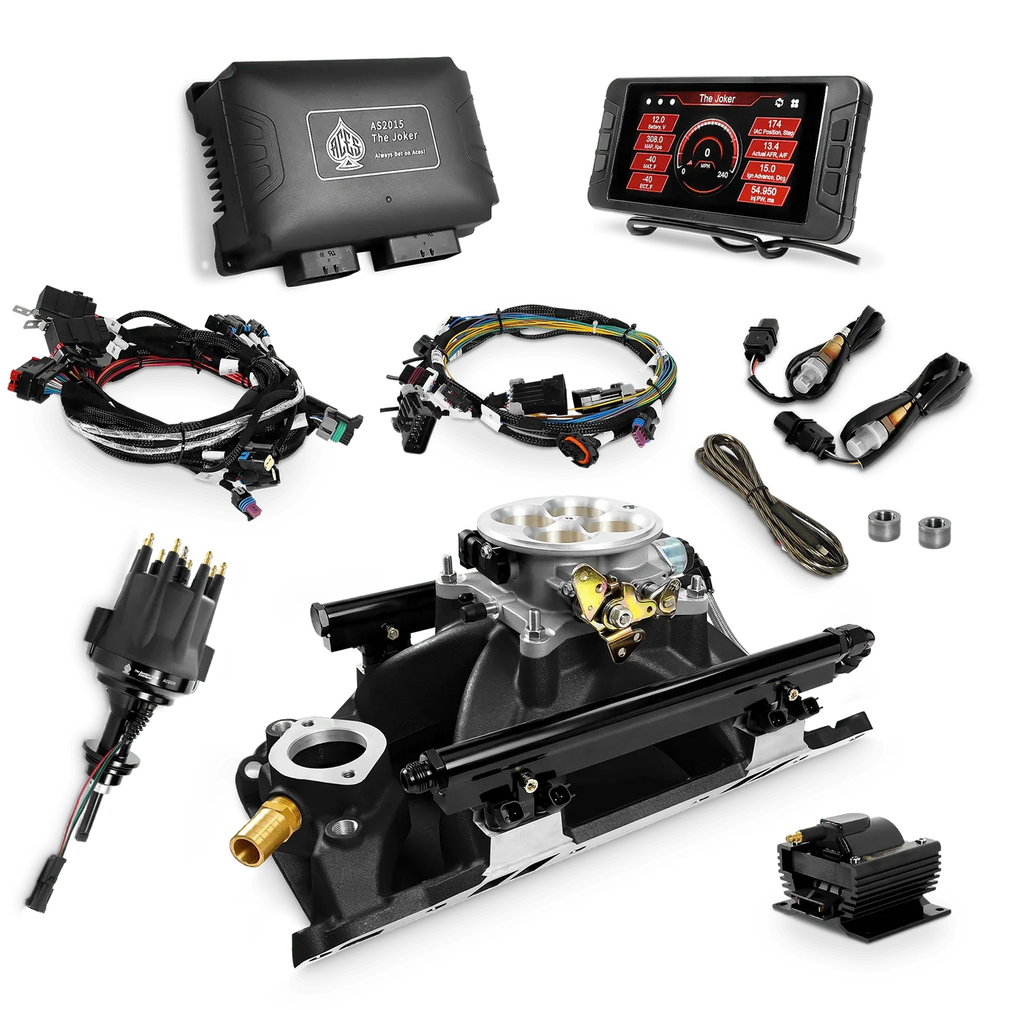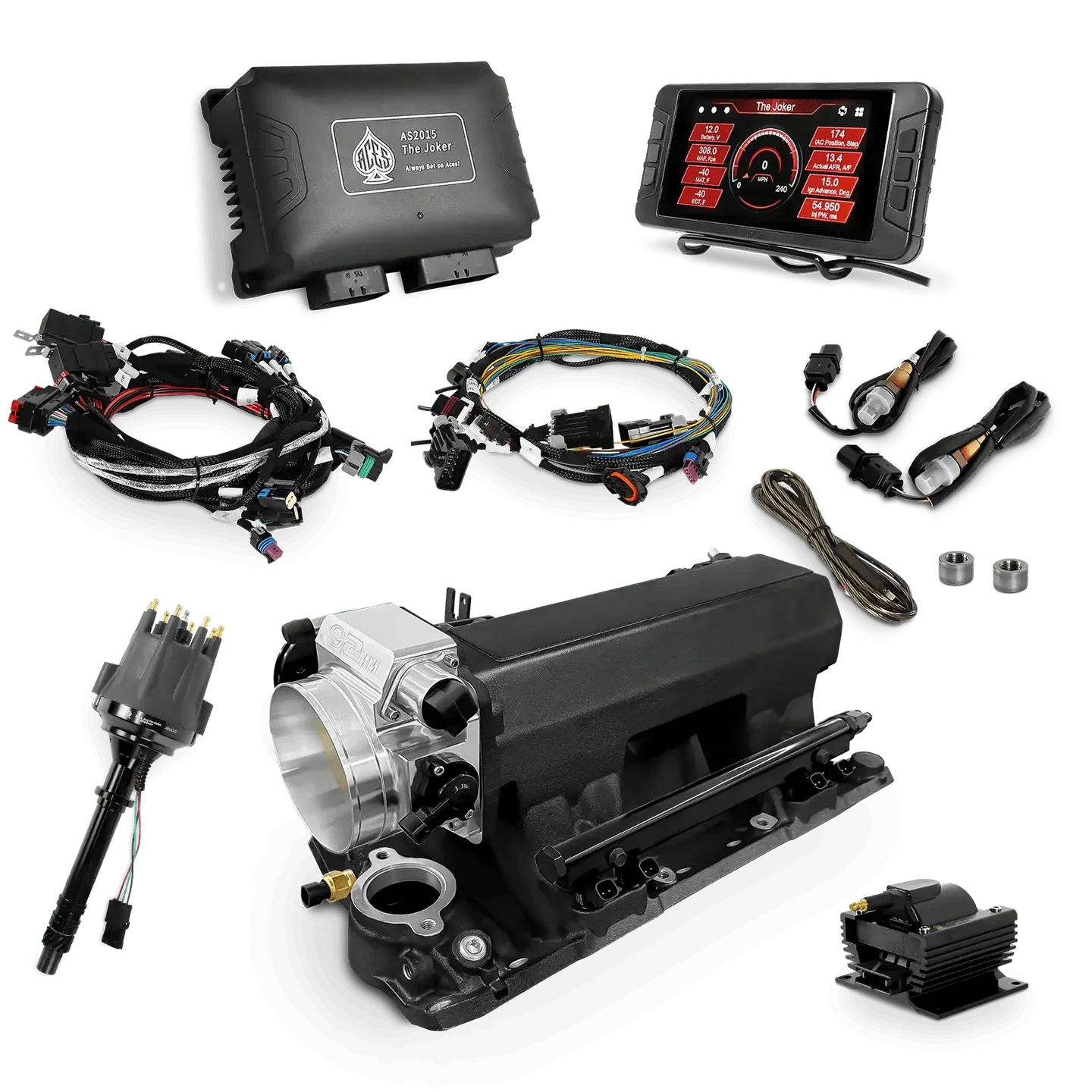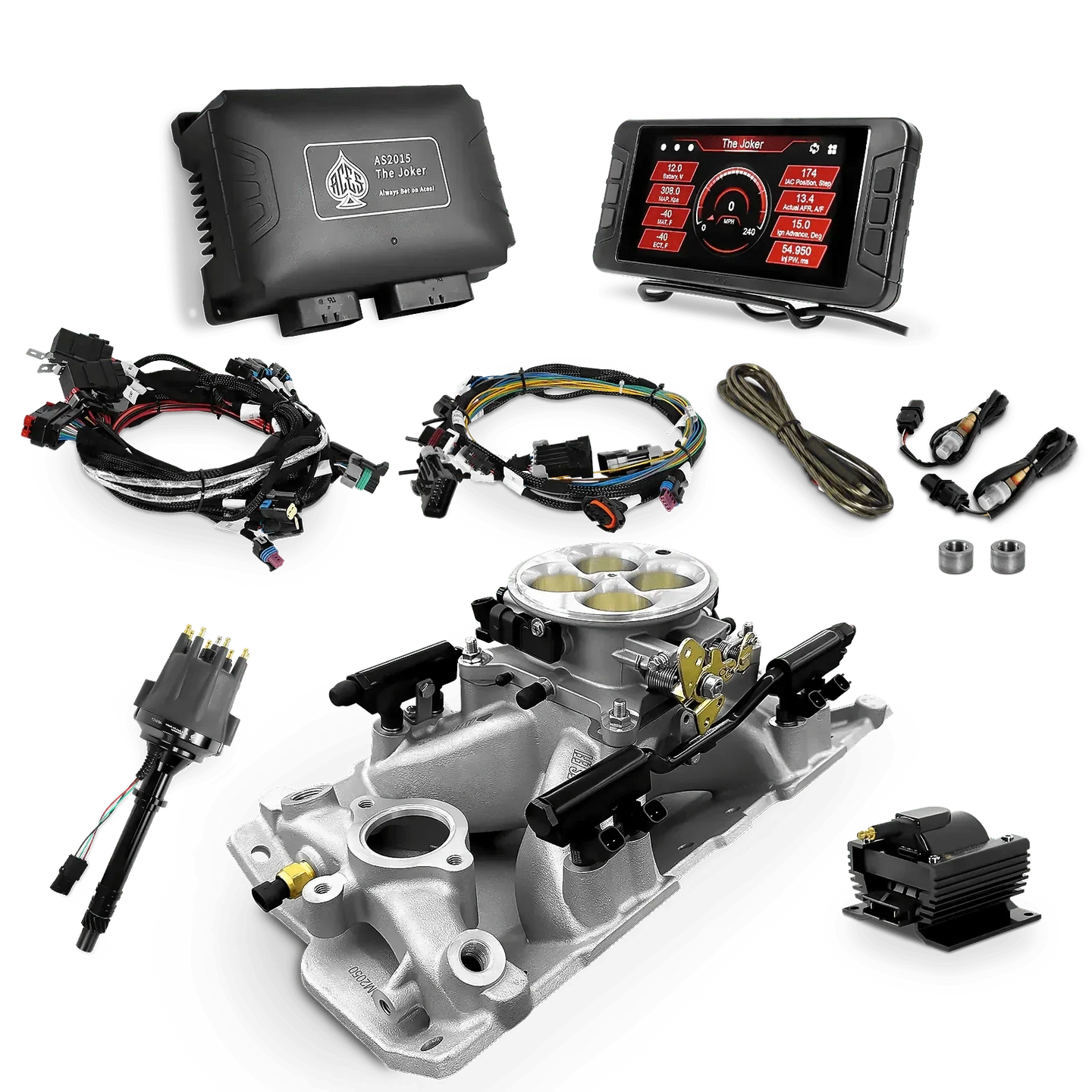 Take your high-performance or boosted V8 to the next level with ACES EFI’s Joker EFI/CDI—the most powerful Multi-Port EFI system on the market! The Joker is the only EFI system that integrates a Digital Capacitive Discharge Ignition (DCDI) system inside the ECU, delivering unmatched spark energy, precision, and control. Whether you're running high compression, forced induction, or aggressive racing setups, the Joker’s high-voltage CDI system ensures maximum power and efficiency.