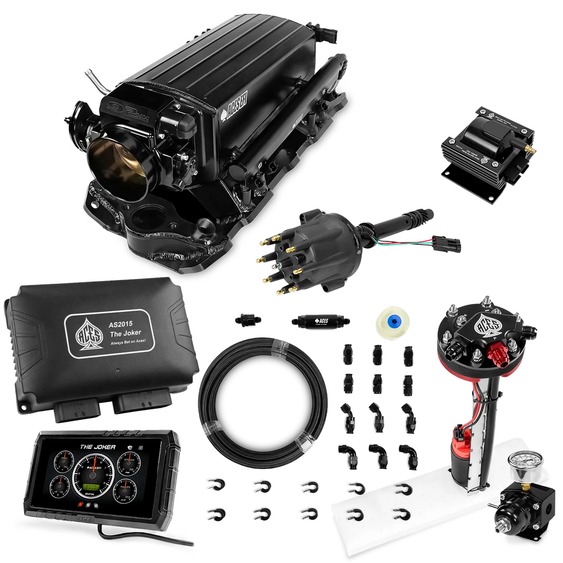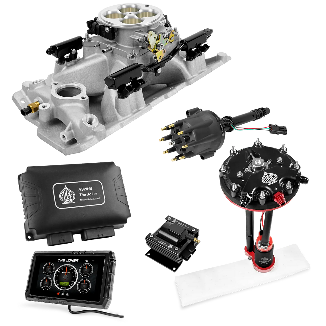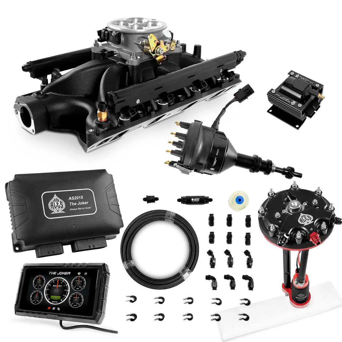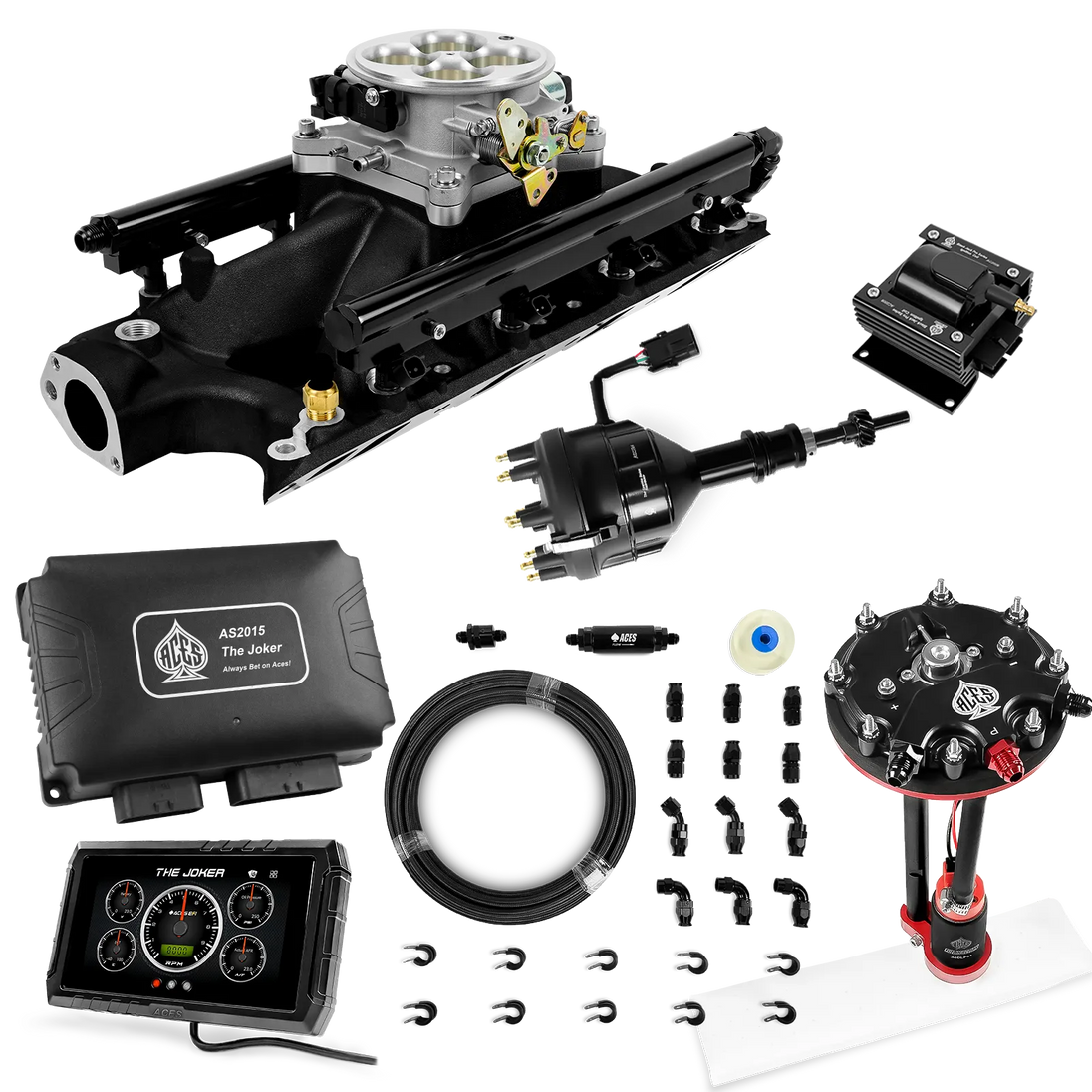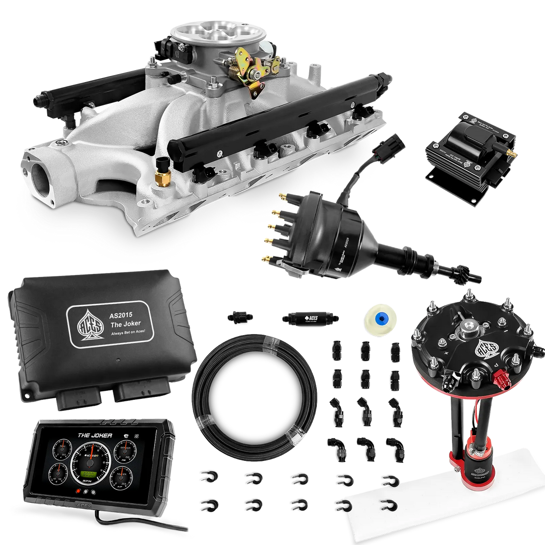 Take your high-performance or boosted V8 to the next level with ACES EFI’s Joker EFI/CDI—the most powerful Multi-Port EFI system on the market! The Joker is the only EFI system that integrates a Digital Capacitive Discharge Ignition (DCDI) system inside the ECU, delivering unmatched spark energy, precision, and control. Whether you're running high compression, forced induction, or aggressive racing setups, the Joker’s high-voltage CDI system ensures maximum power and efficiency.