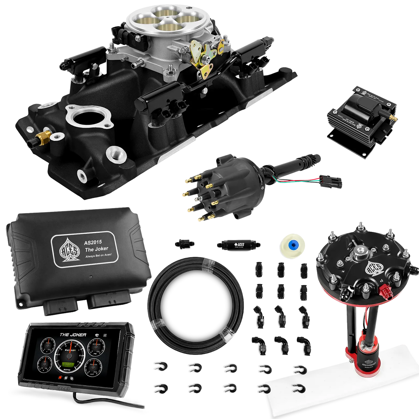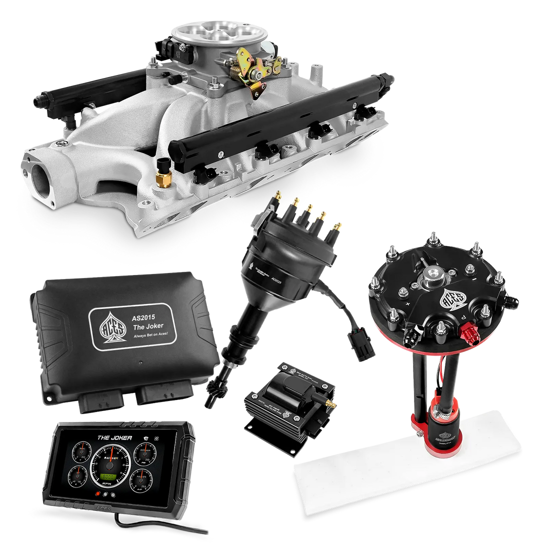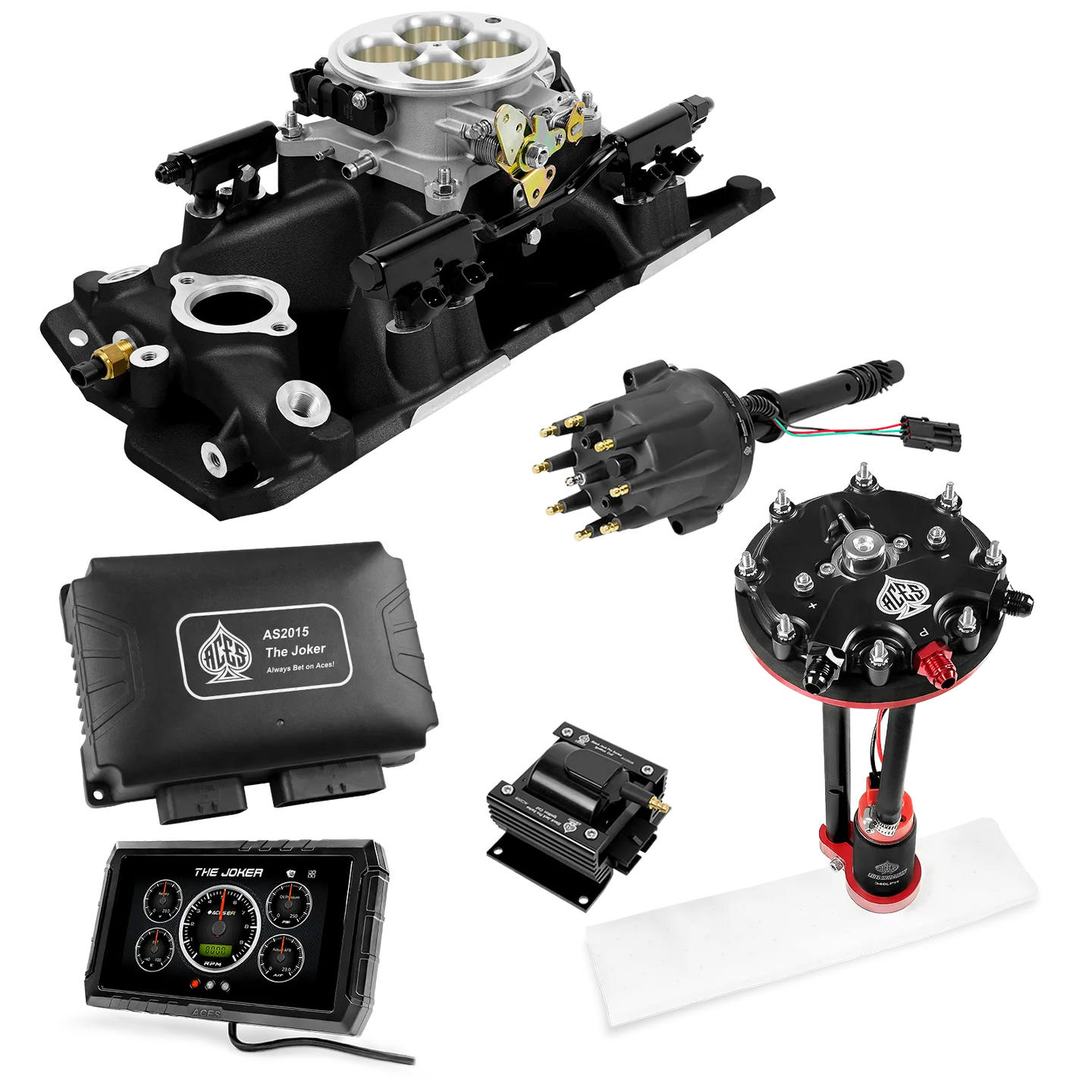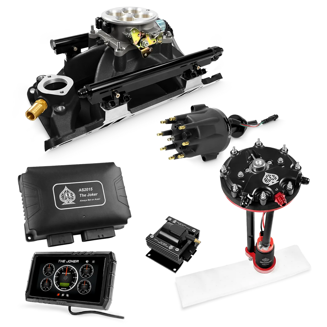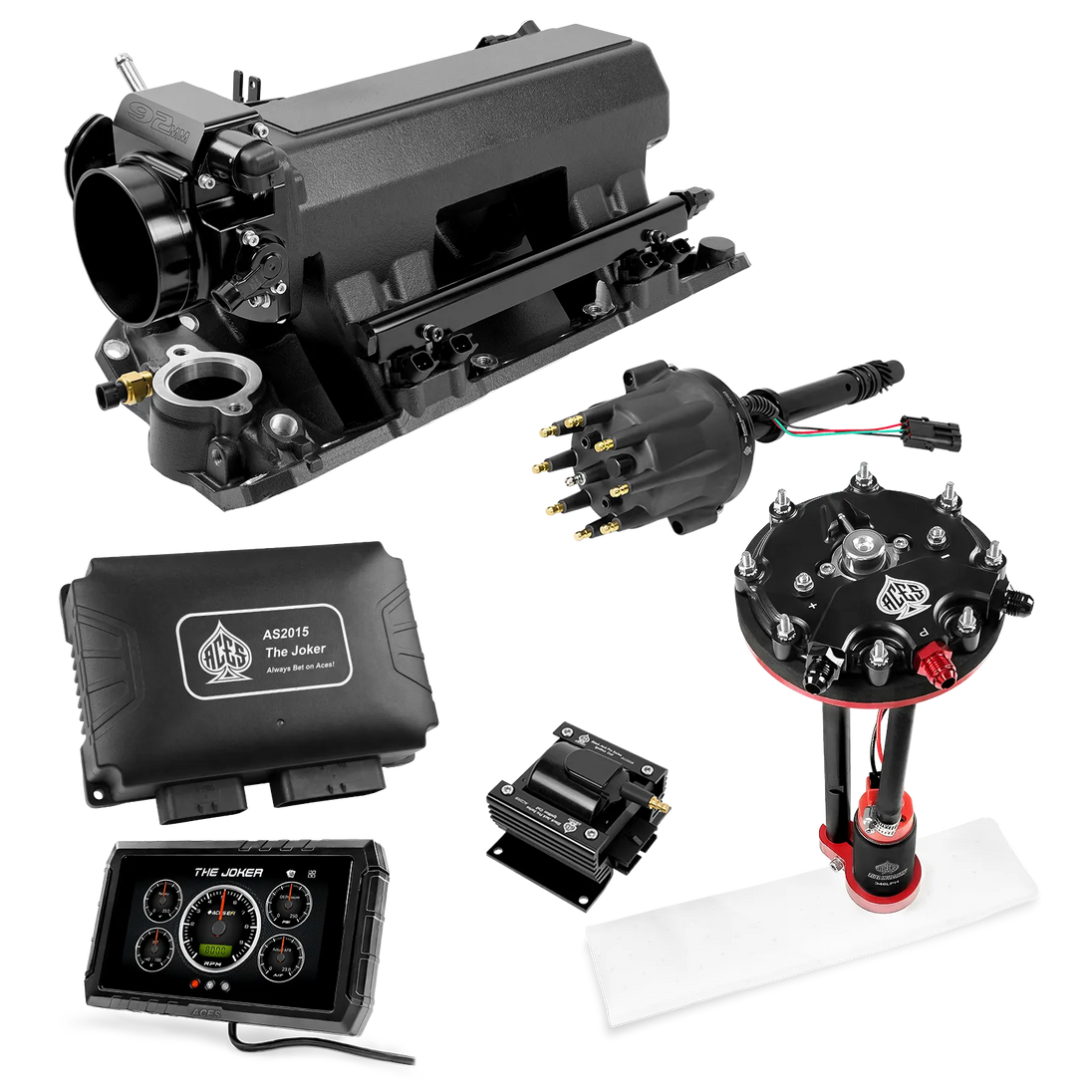 Take your high-performance or boosted V8 to the next level with ACES EFI’s Joker EFI/CDI—the most powerful Multi-Port EFI system on the market! The Joker is the only EFI system that integrates a Digital Capacitive Discharge Ignition (DCDI) system inside the ECU, delivering unmatched spark energy, precision, and control. Whether you're running high compression, forced induction, or aggressive racing setups, the Joker’s high-voltage CDI system ensures maximum power and efficiency.