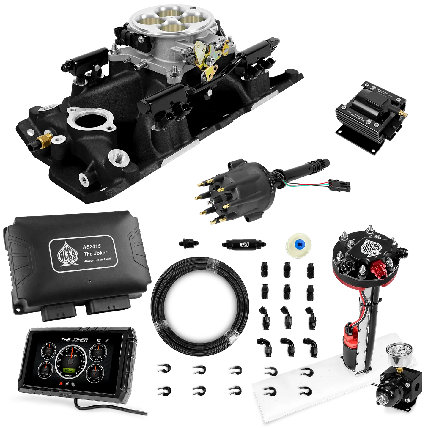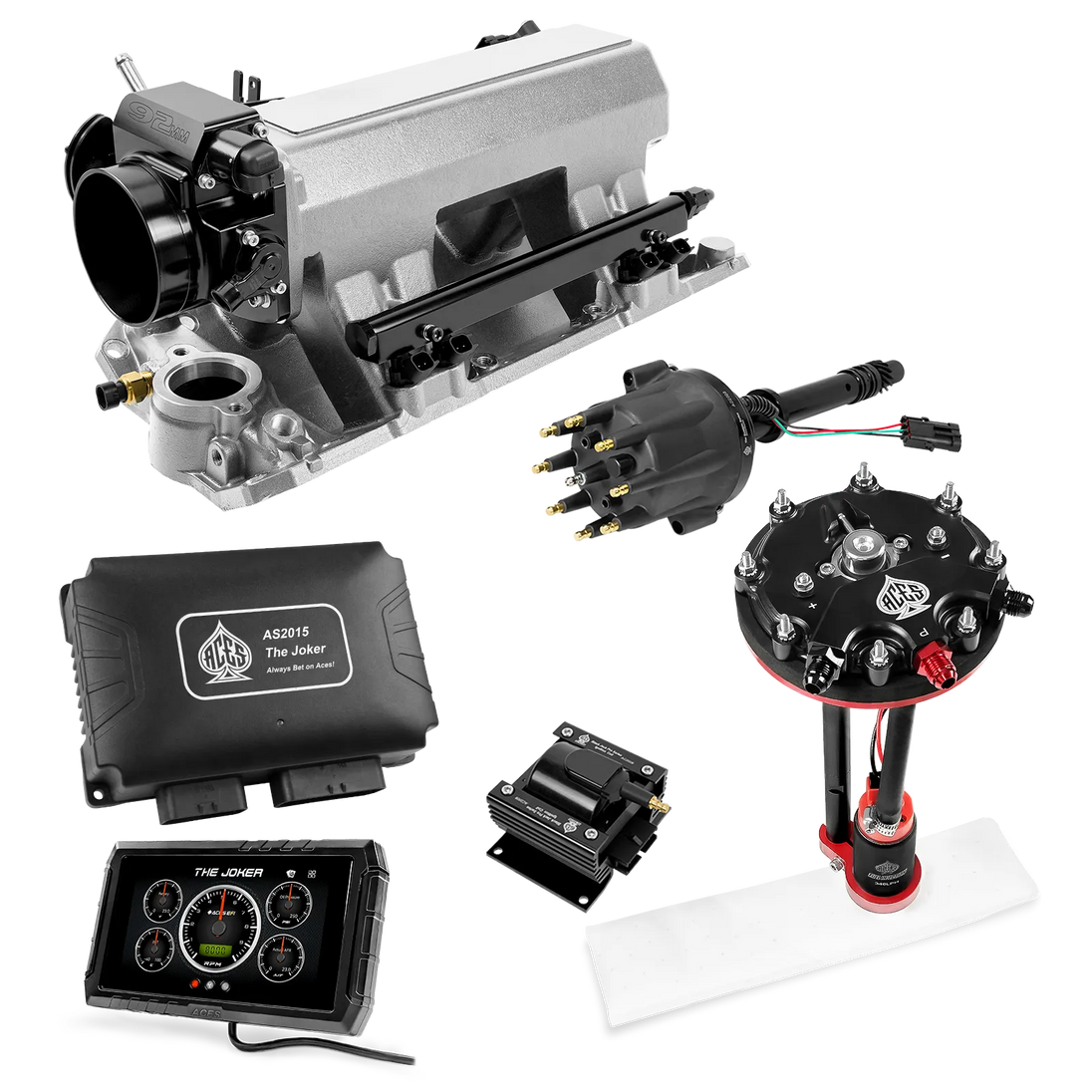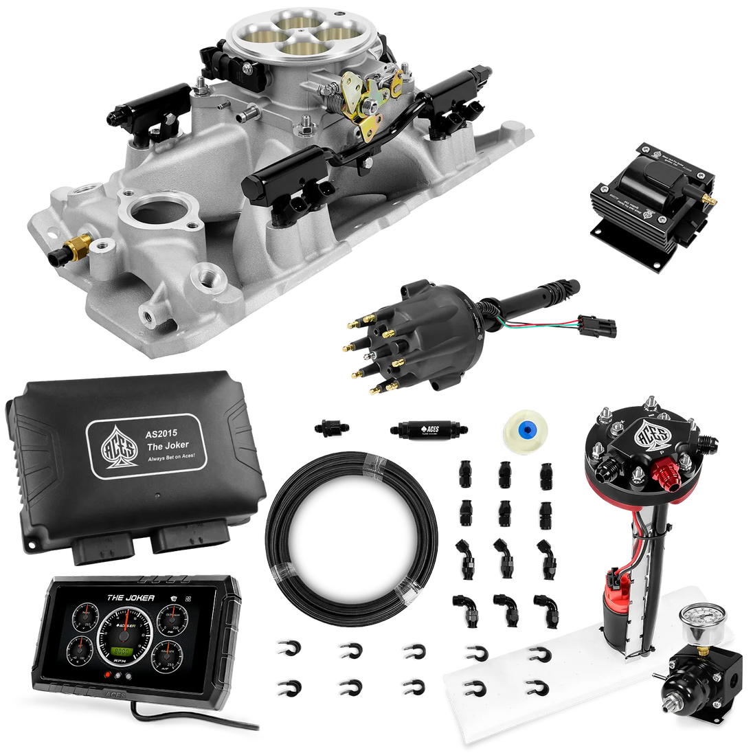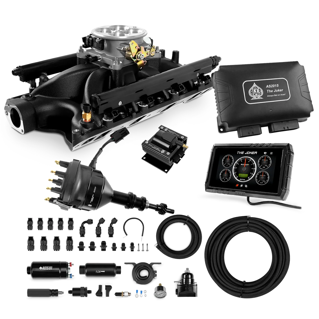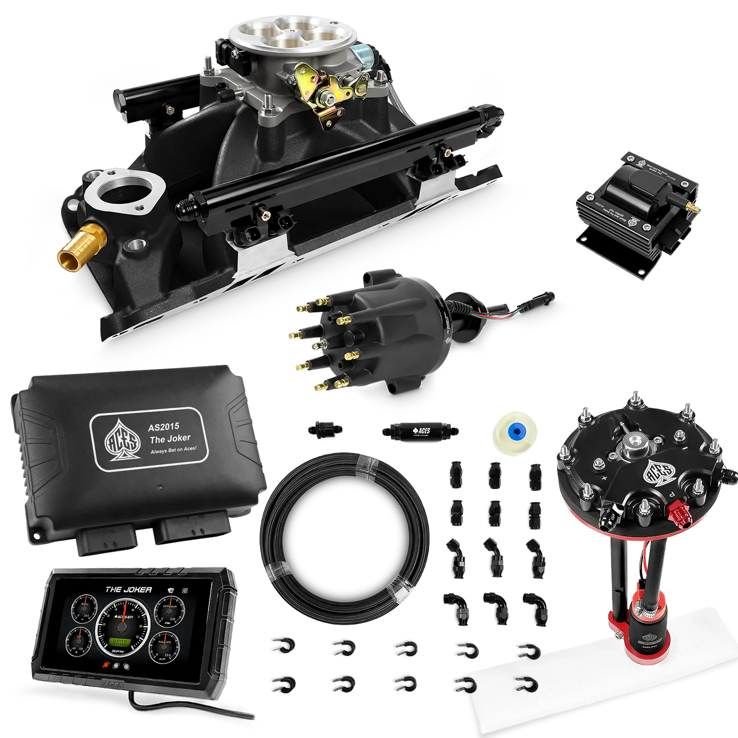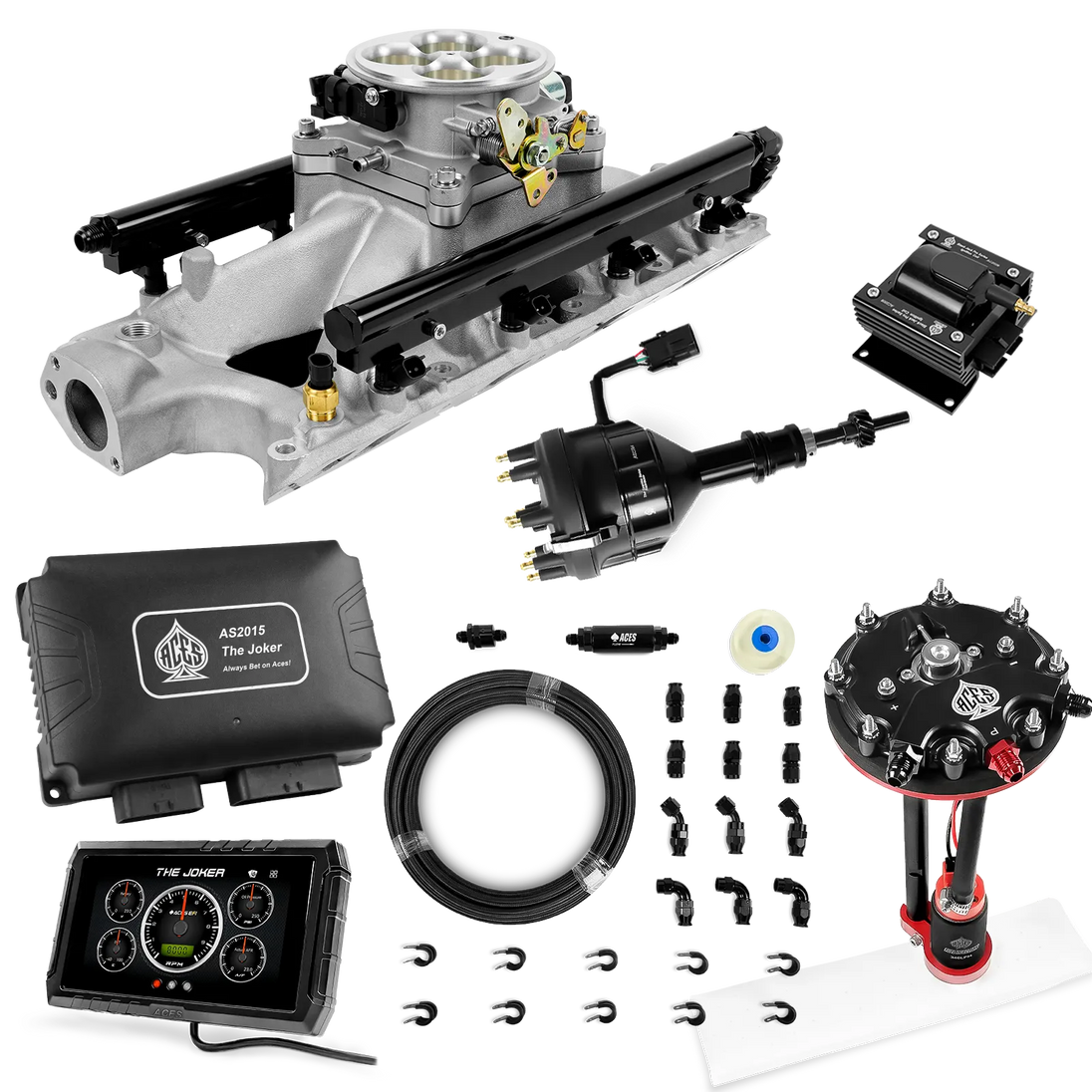 Take your high-performance or boosted V8 to the next level with ACES EFI’s Joker EFI/CDI—the most powerful Multi-Port EFI system on the market! The Joker is the only EFI system that integrates a Digital Capacitive Discharge Ignition (DCDI) system inside the ECU, delivering unmatched spark energy, precision, and control. Whether you're running high compression, forced induction, or aggressive racing setups, the Joker’s high-voltage CDI system ensures maximum power and efficiency.