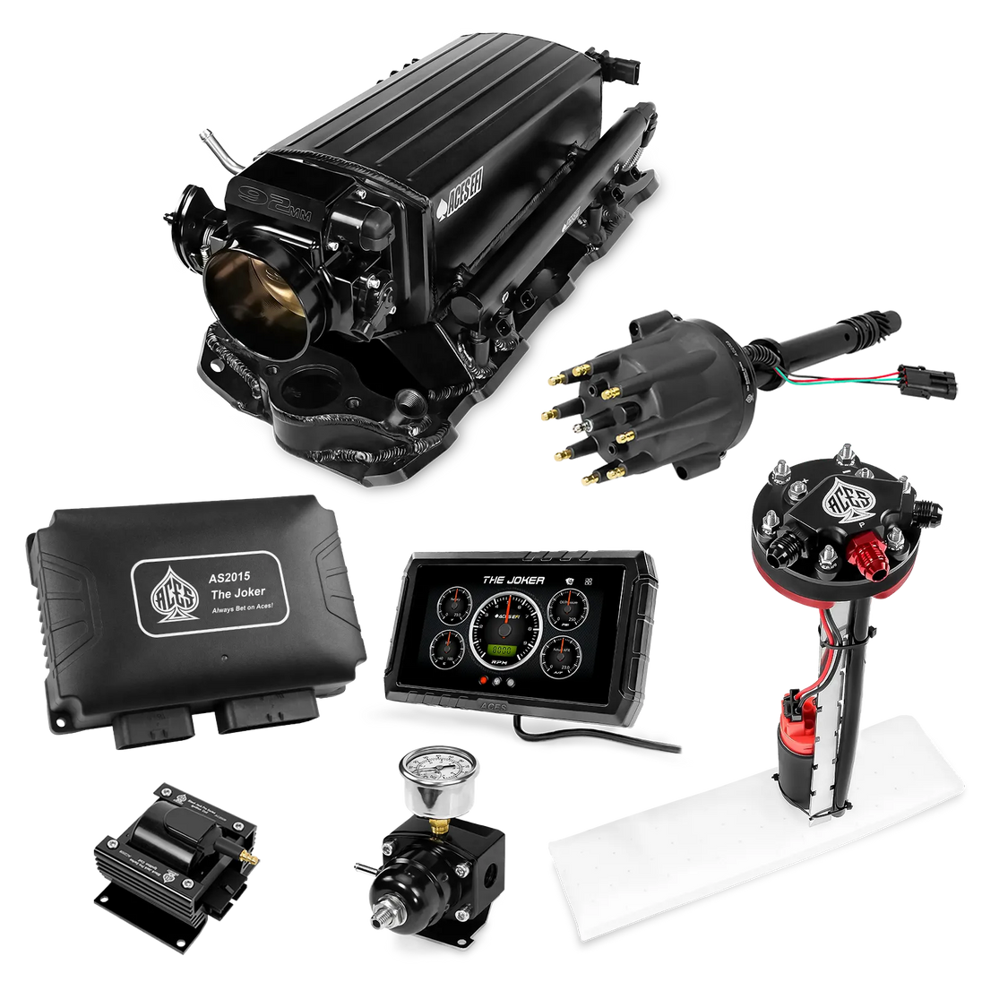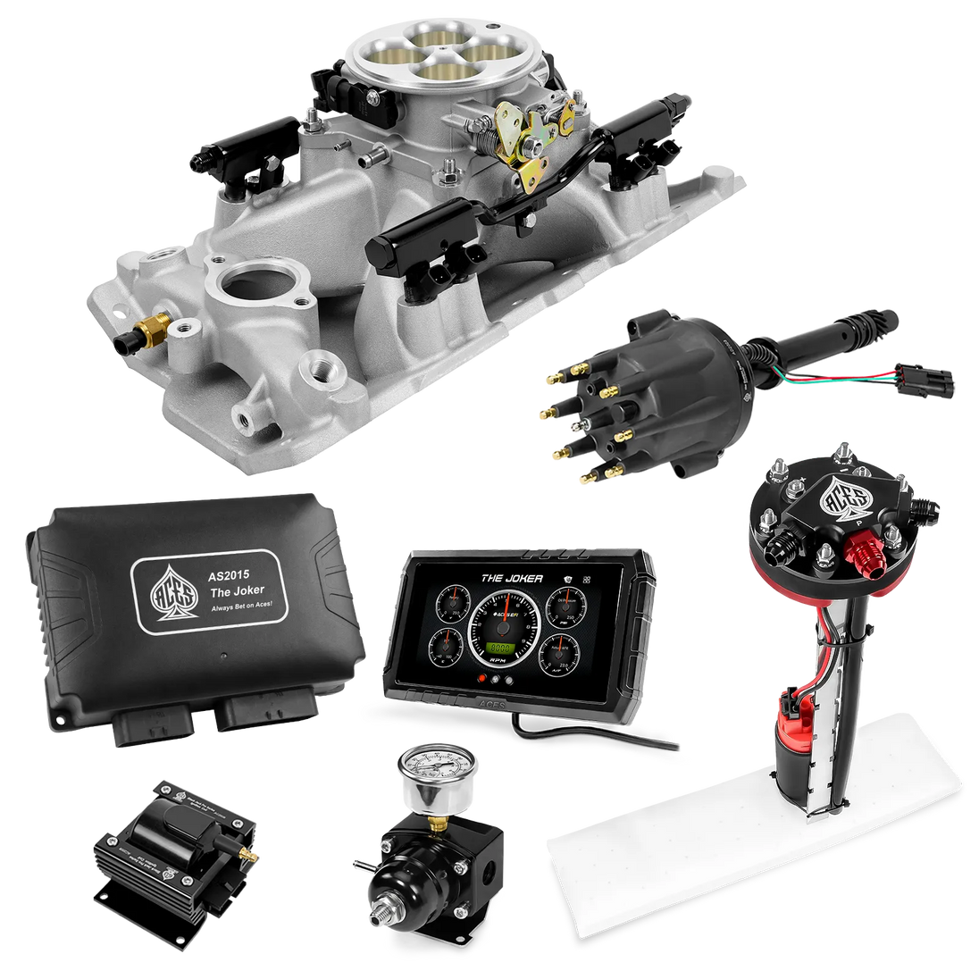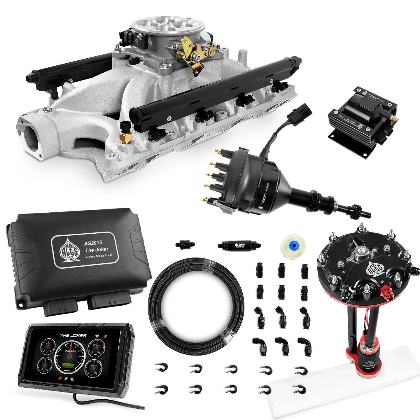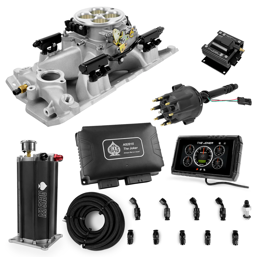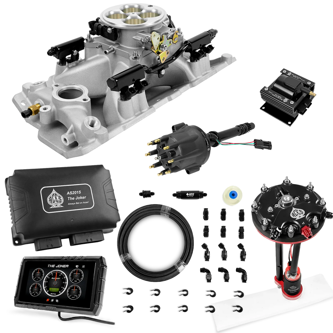 Take your high-performance or boosted V8 to the next level with ACES EFI’s Joker EFI/CDI—the most powerful Multi-Port EFI system on the market! The Joker is the only EFI system that integrates a Digital Capacitive Discharge Ignition (DCDI) system inside the ECU, delivering unmatched spark energy, precision, and control. Whether you're running high compression, forced induction, or aggressive racing setups, the Joker’s high-voltage CDI system ensures maximum power and efficiency.