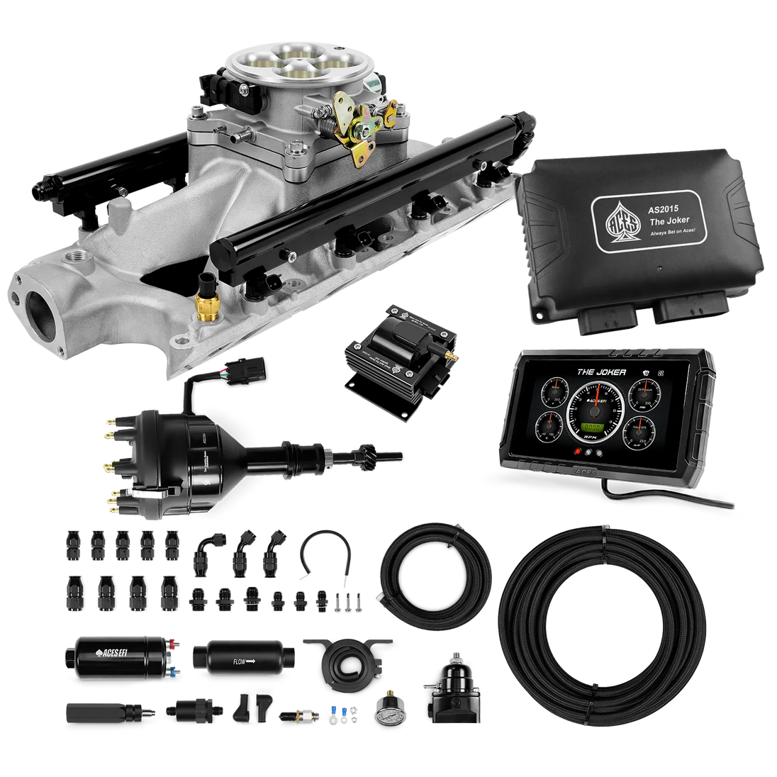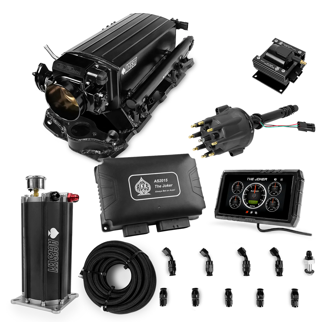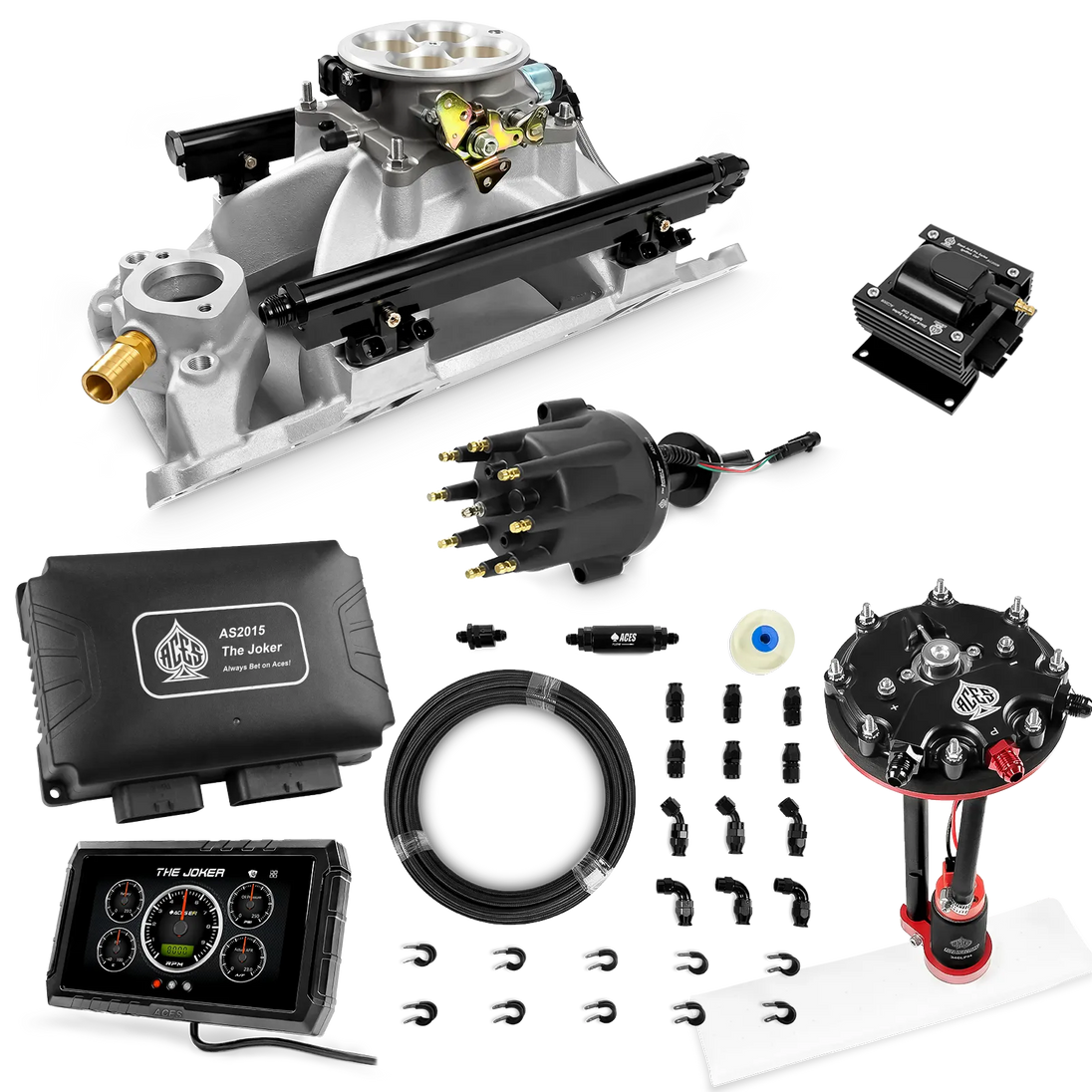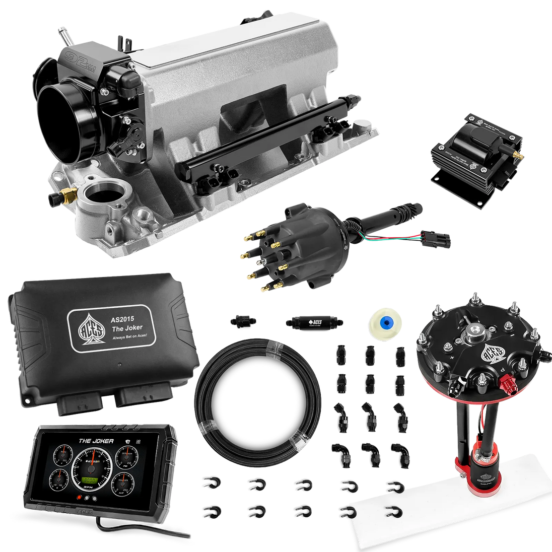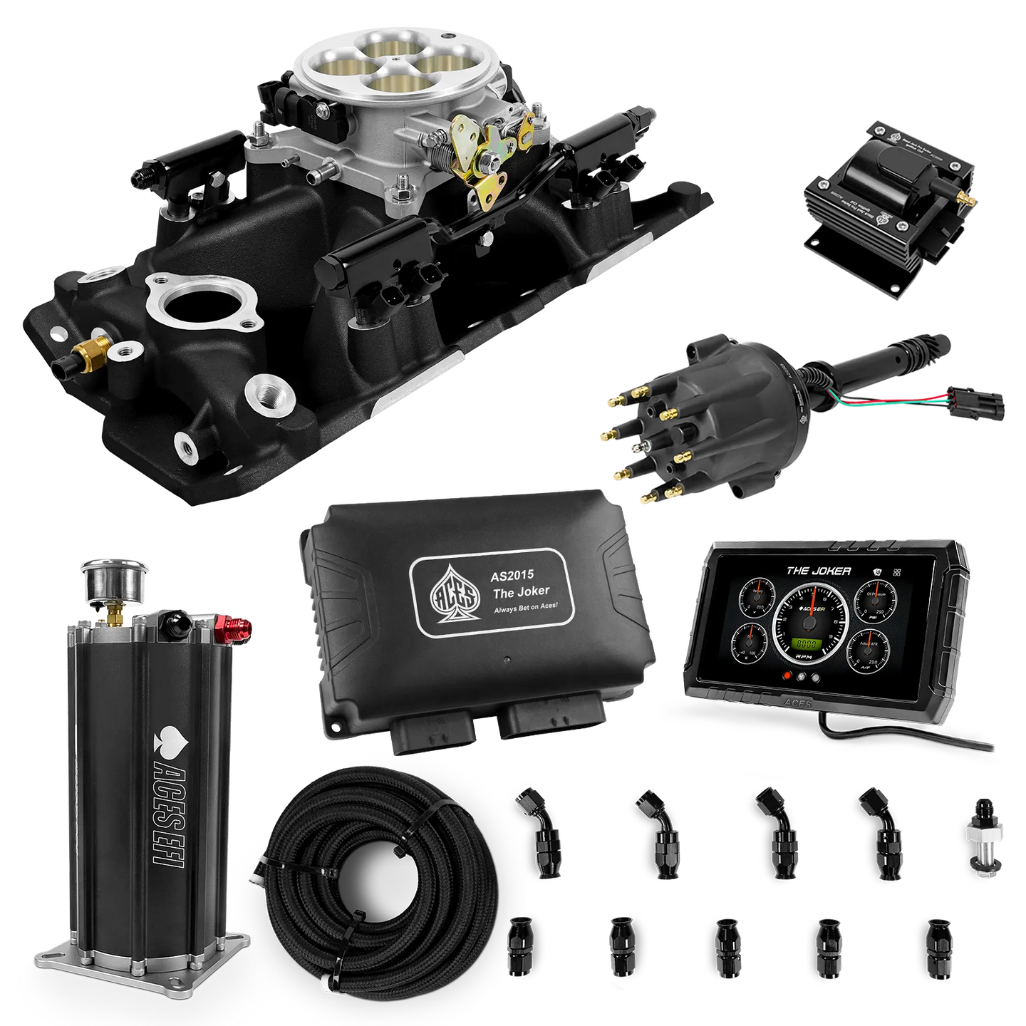 Take your high-performance or boosted V8 to the next level with ACES EFI’s Joker EFI/CDI—the most powerful Multi-Port EFI system on the market! The Joker is the only EFI system that integrates a Digital Capacitive Discharge Ignition (DCDI) system inside the ECU, delivering unmatched spark energy, precision, and control. Whether you're running high compression, forced induction, or aggressive racing setups, the Joker’s high-voltage CDI system ensures maximum power and efficiency.