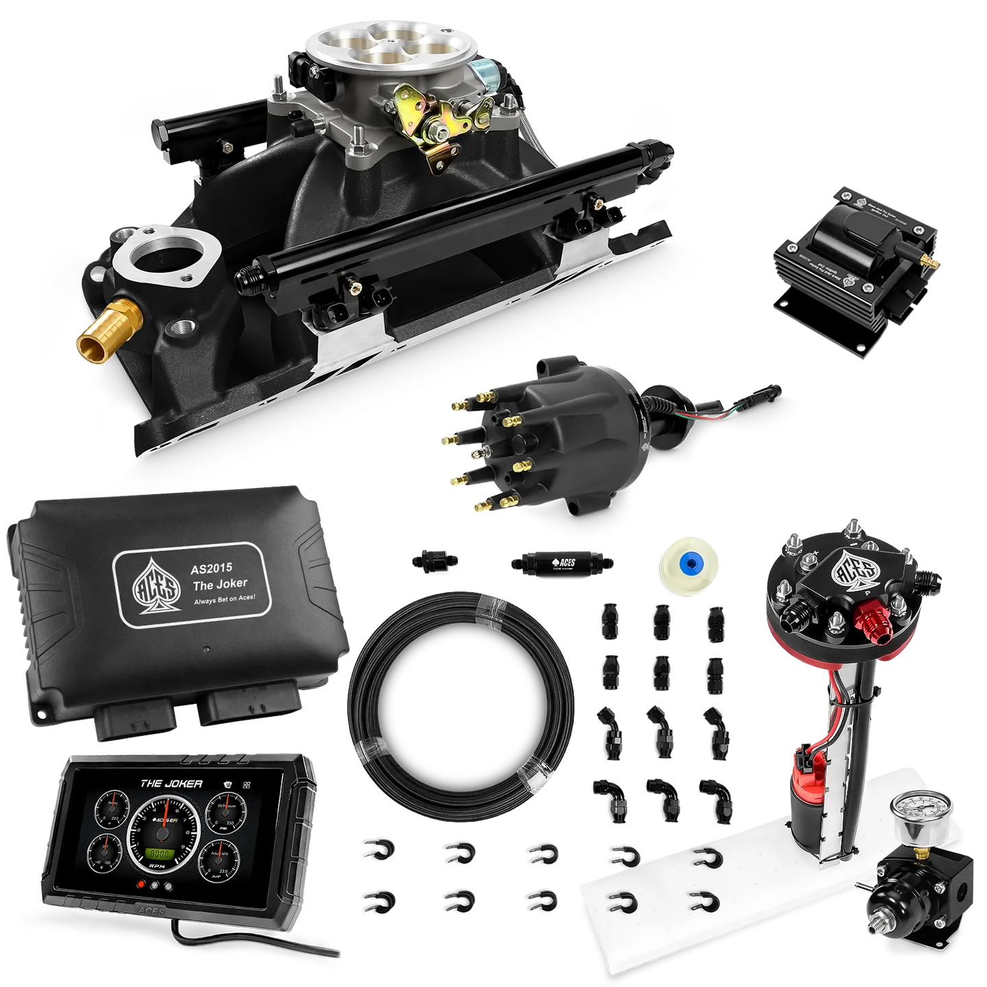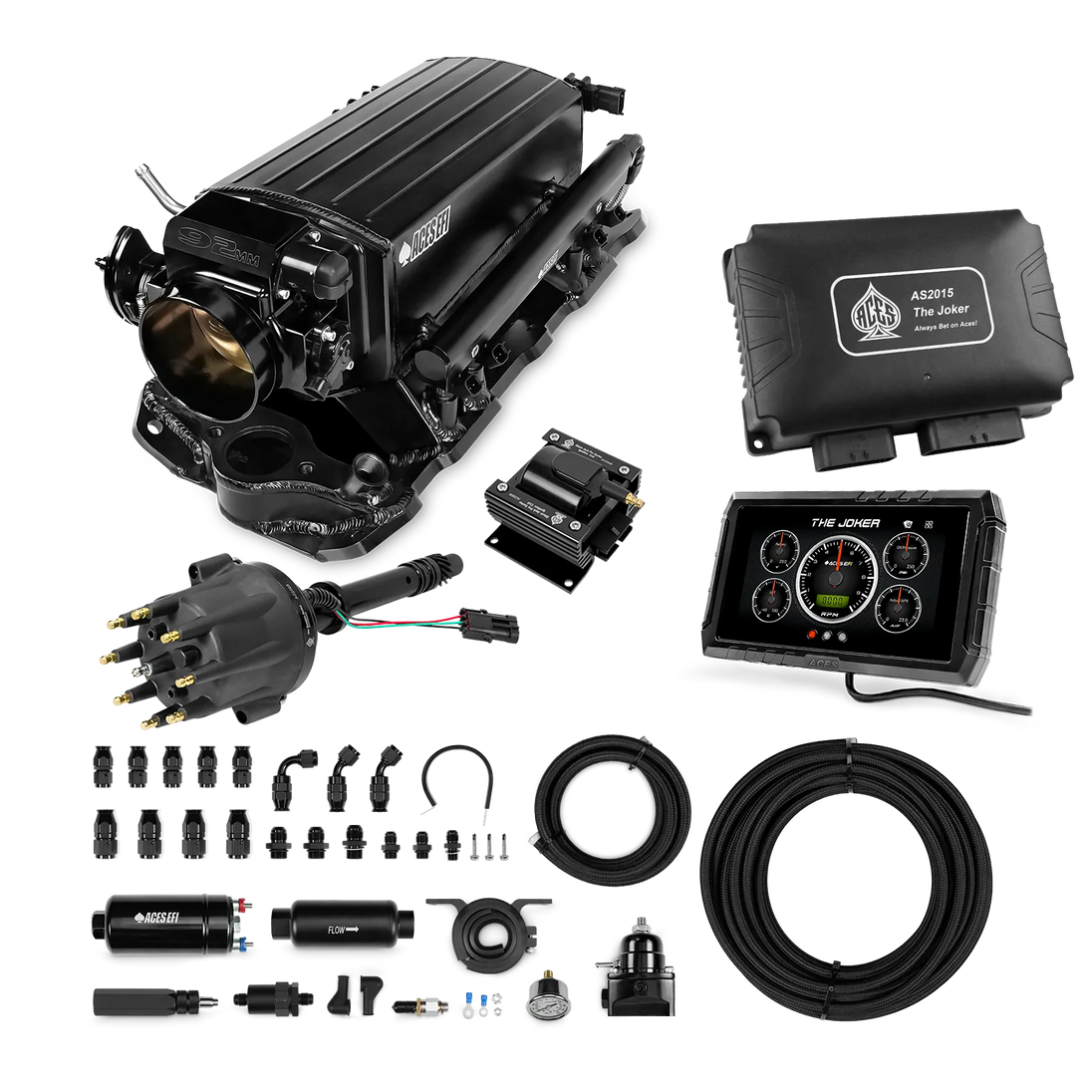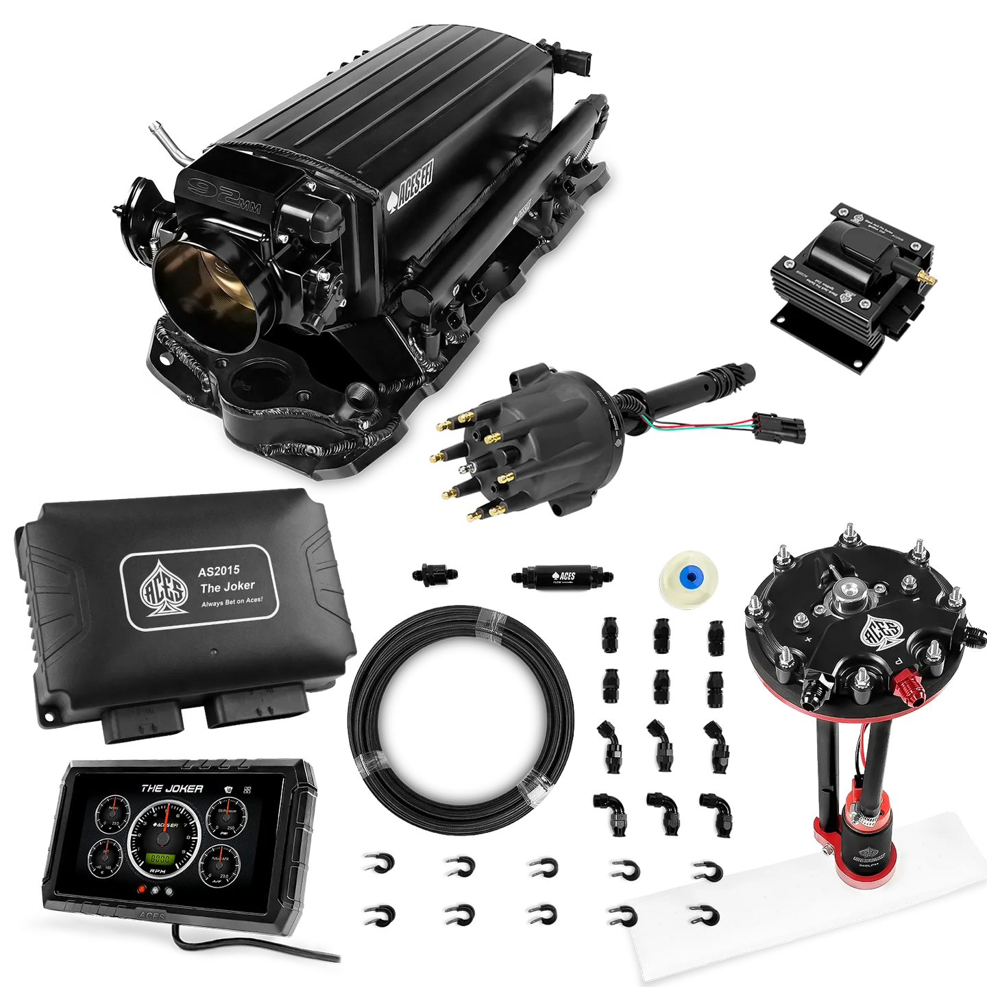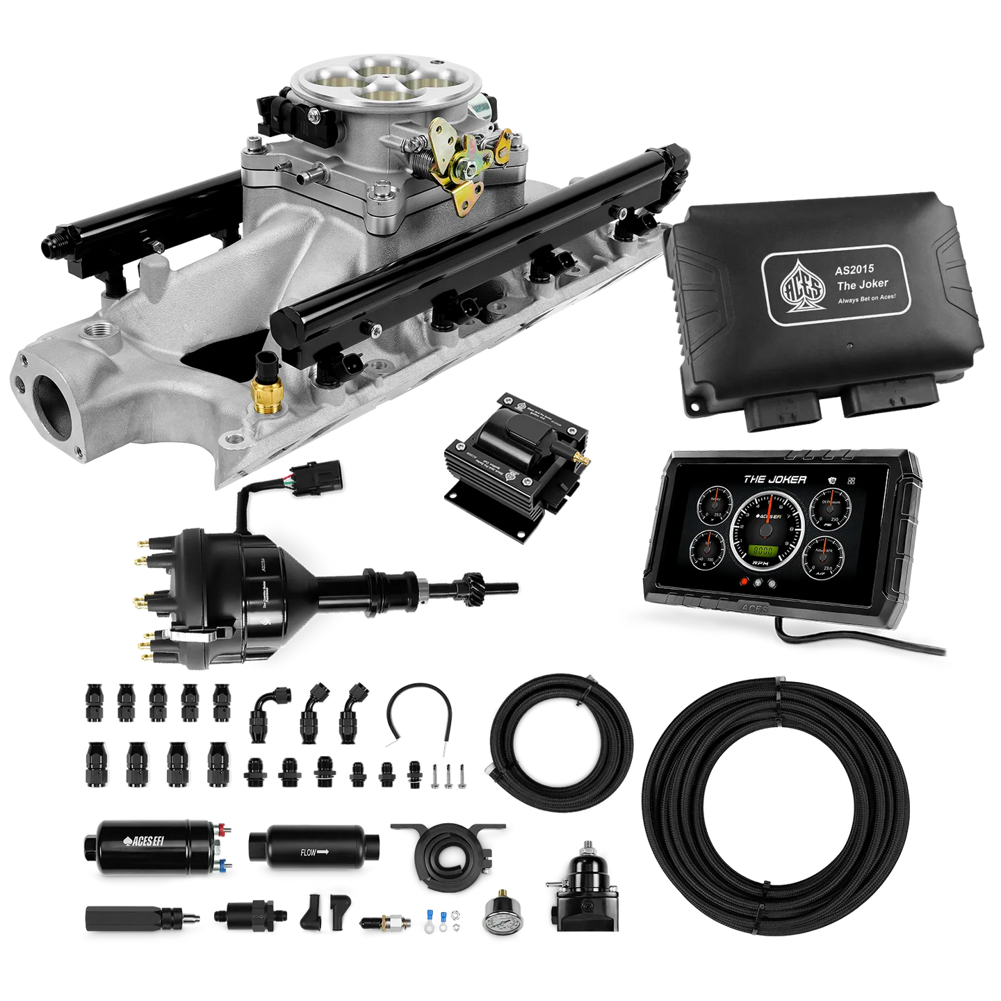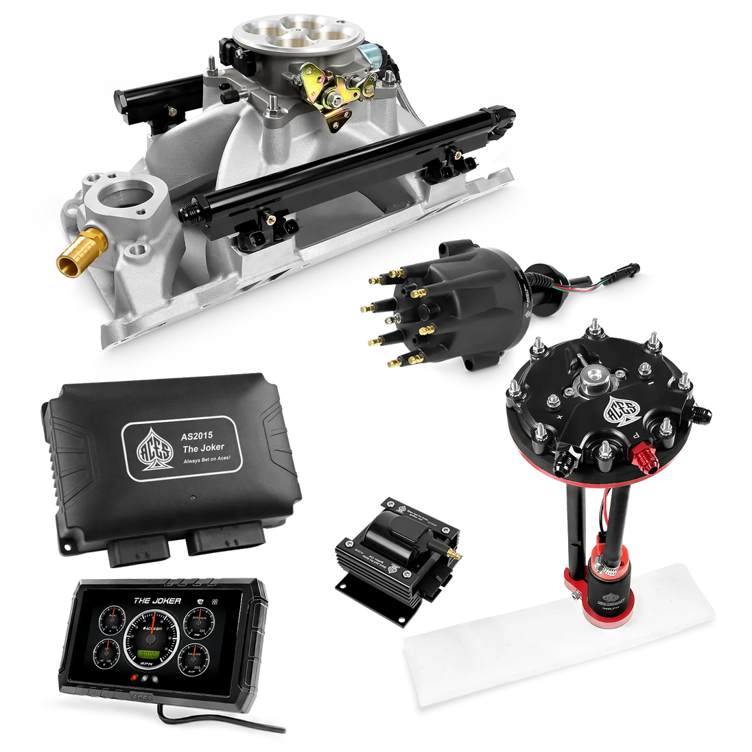 Take your high-performance or boosted V8 to the next level with ACES EFI’s Joker EFI/CDI—the most powerful Multi-Port EFI system on the market! The Joker is the only EFI system that integrates a Digital Capacitive Discharge Ignition (DCDI) system inside the ECU, delivering unmatched spark energy, precision, and control. Whether you're running high compression, forced induction, or aggressive racing setups, the Joker’s high-voltage CDI system ensures maximum power and efficiency.