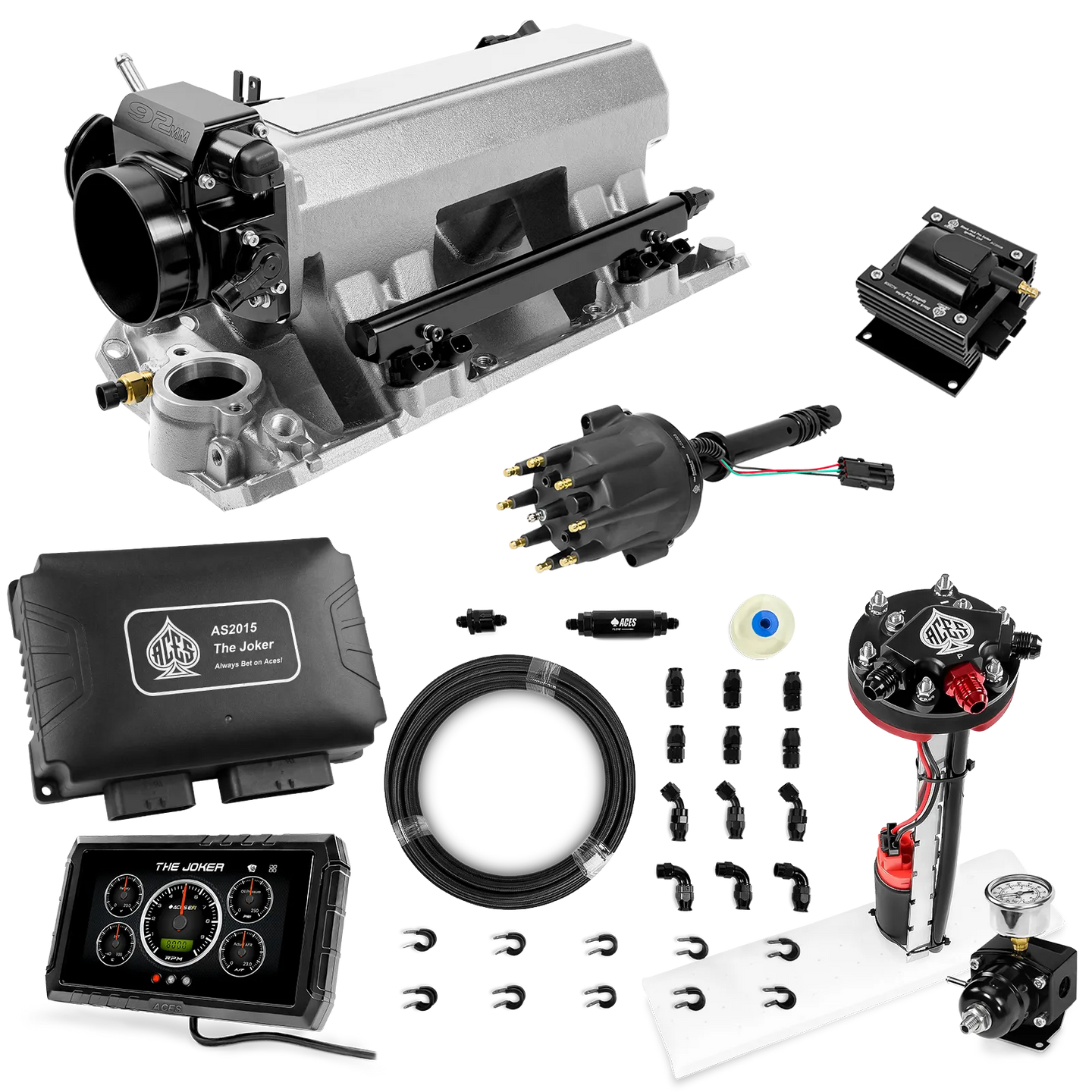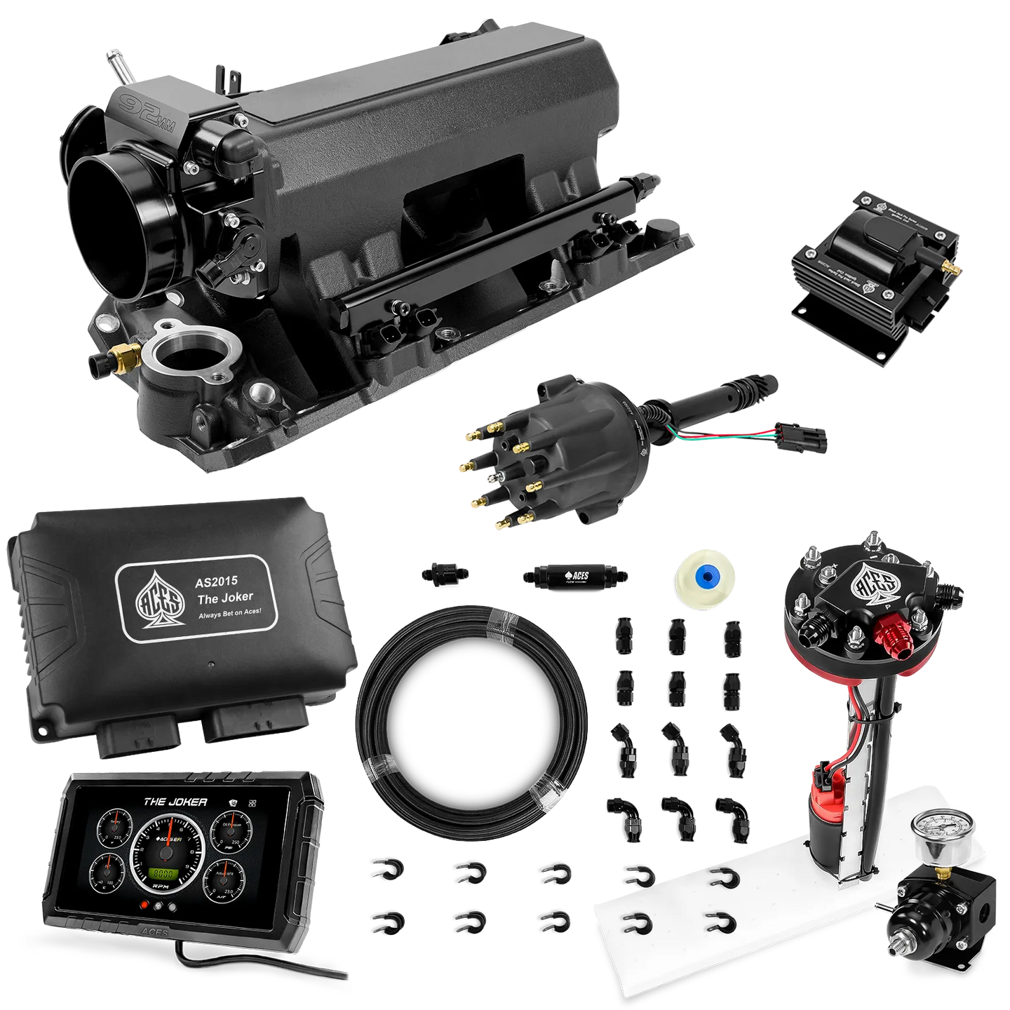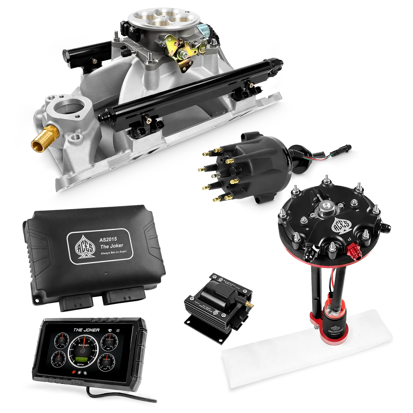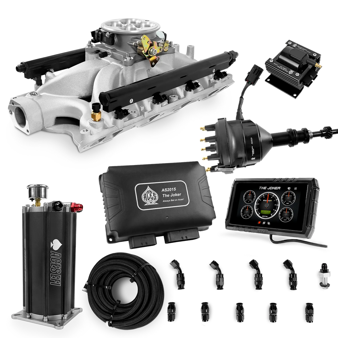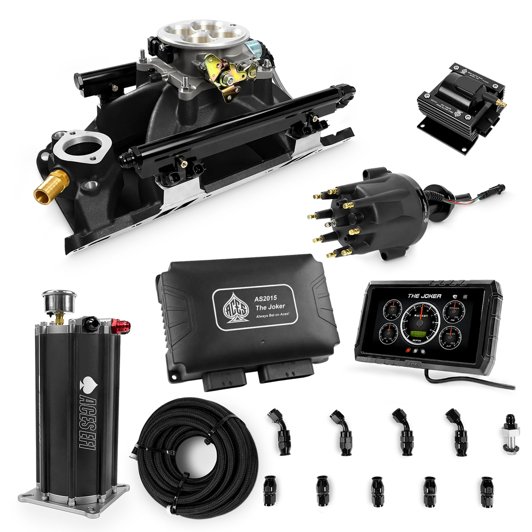 Take your high-performance or boosted V8 to the next level with ACES EFI’s Joker EFI/CDI—the most powerful Multi-Port EFI system on the market! The Joker is the only EFI system that integrates a Digital Capacitive Discharge Ignition (DCDI) system inside the ECU, delivering unmatched spark energy, precision, and control. Whether you're running high compression, forced induction, or aggressive racing setups, the Joker’s high-voltage CDI system ensures maximum power and efficiency.