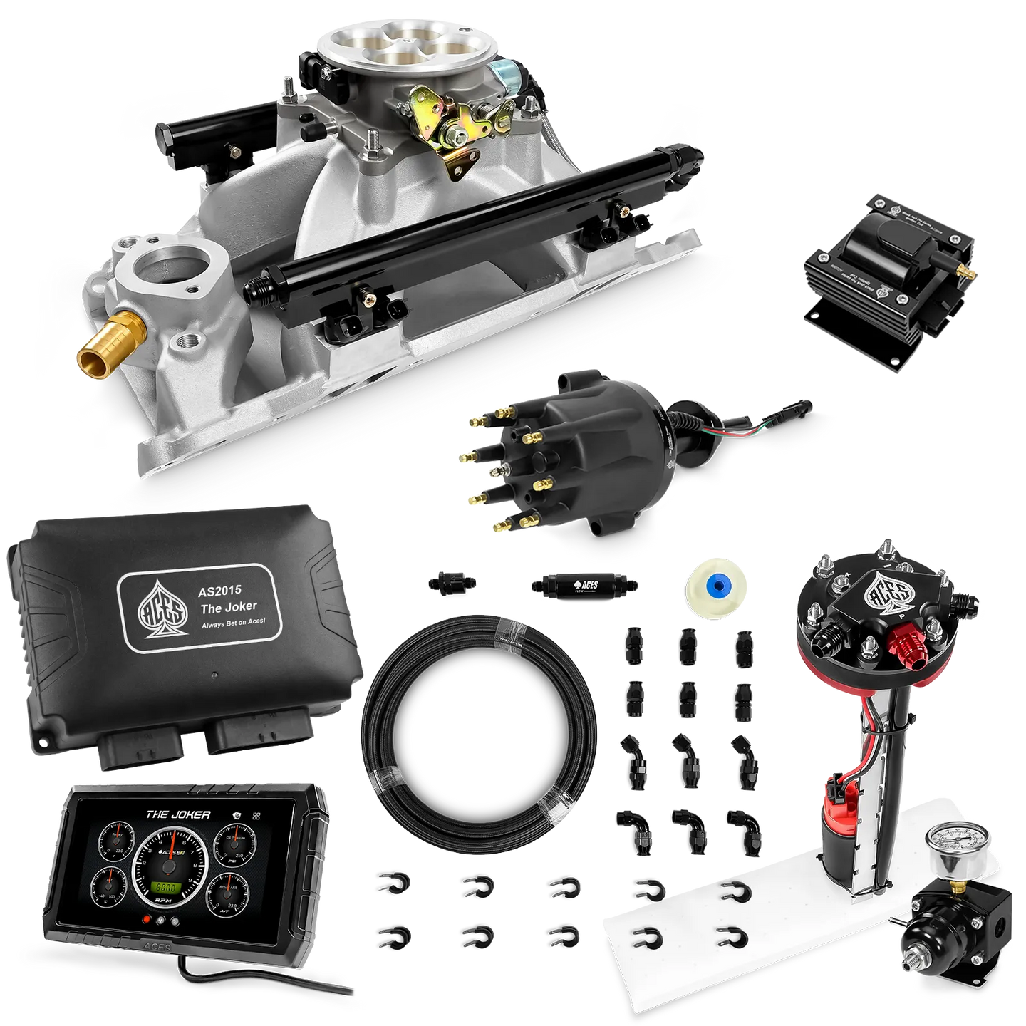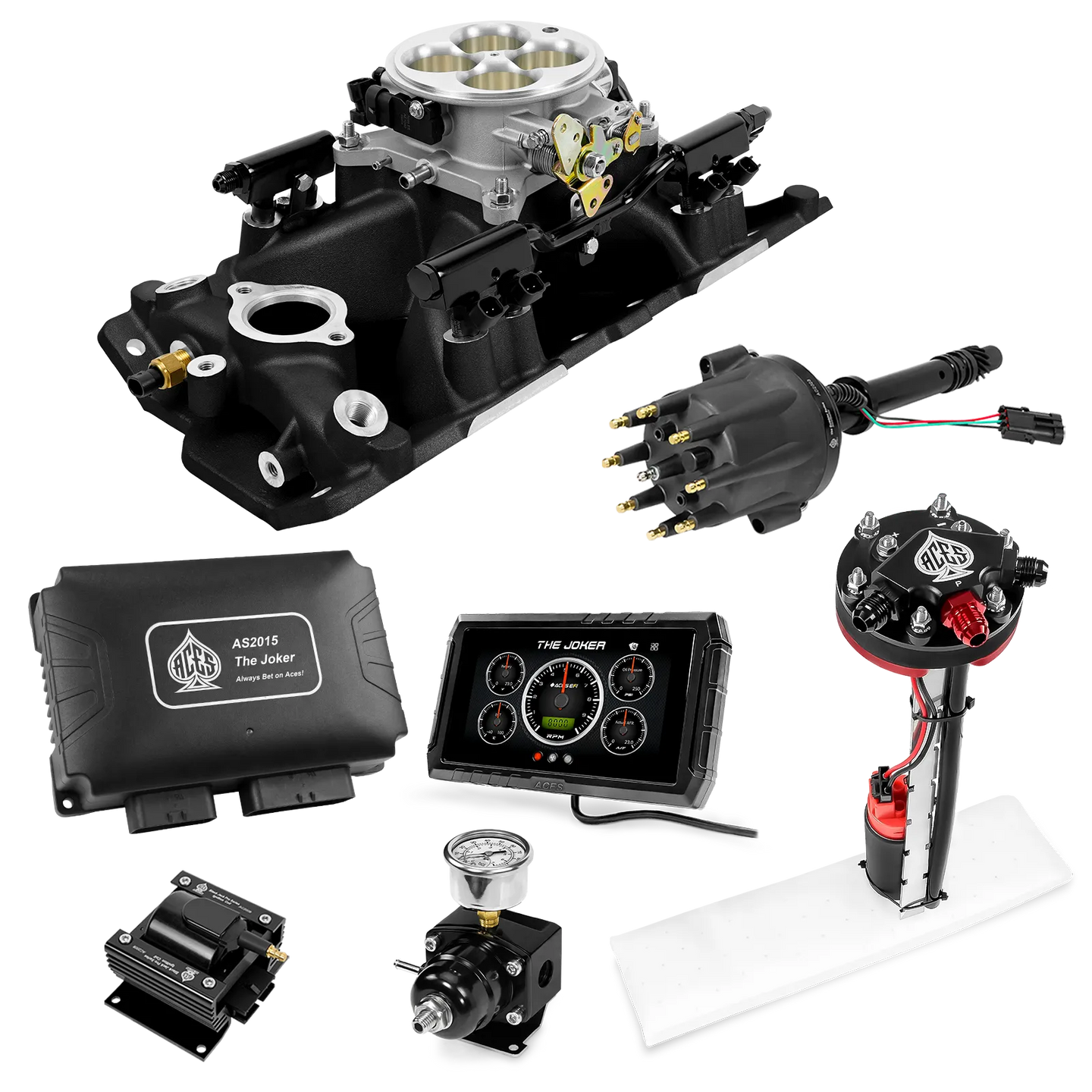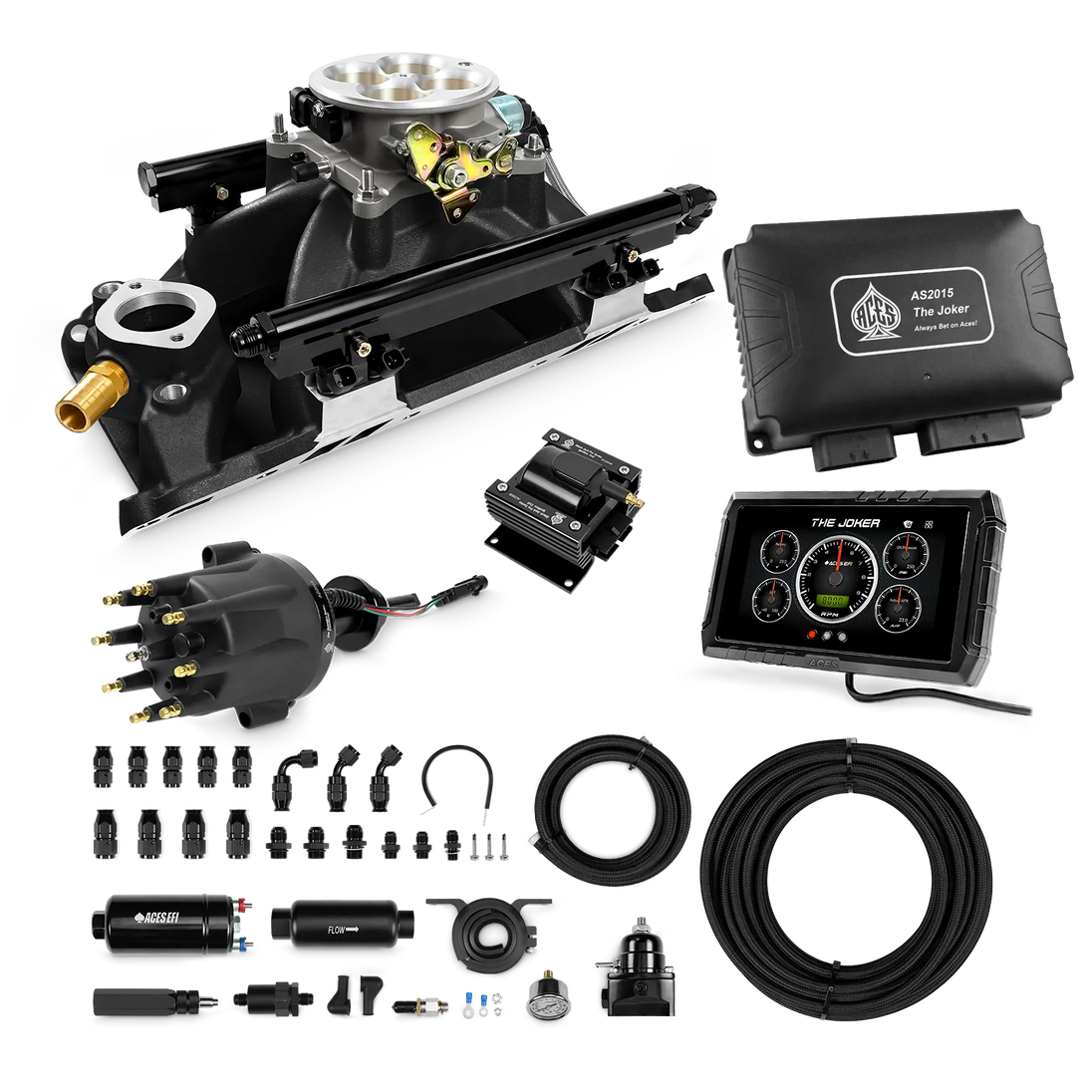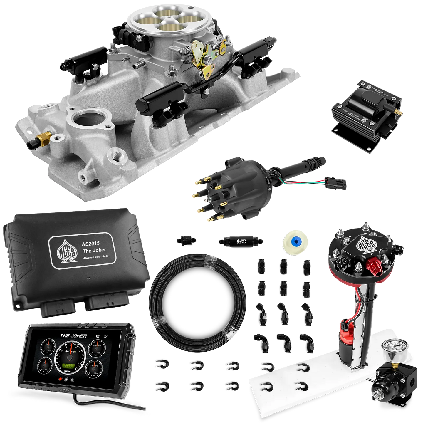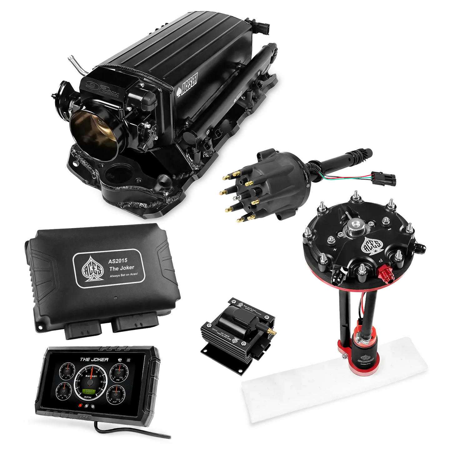 Take your high-performance or boosted V8 to the next level with ACES EFI’s Joker EFI/CDI—the most powerful Multi-Port EFI system on the market! The Joker is the only EFI system that integrates a Digital Capacitive Discharge Ignition (DCDI) system inside the ECU, delivering unmatched spark energy, precision, and control. Whether you're running high compression, forced induction, or aggressive racing setups, the Joker’s high-voltage CDI system ensures maximum power and efficiency.