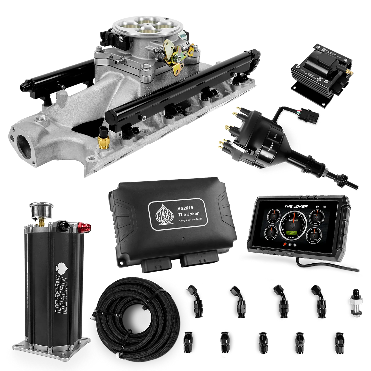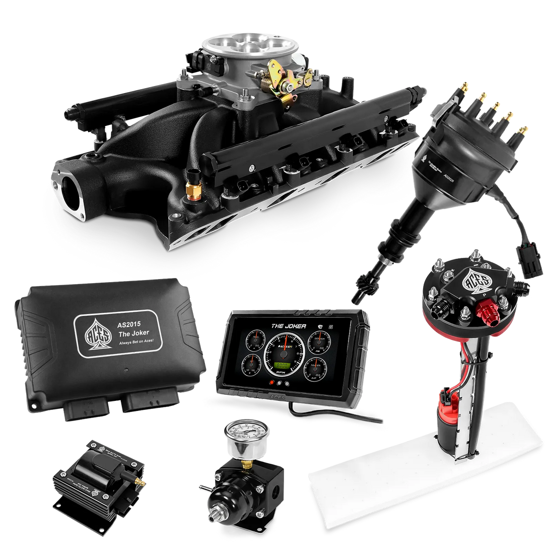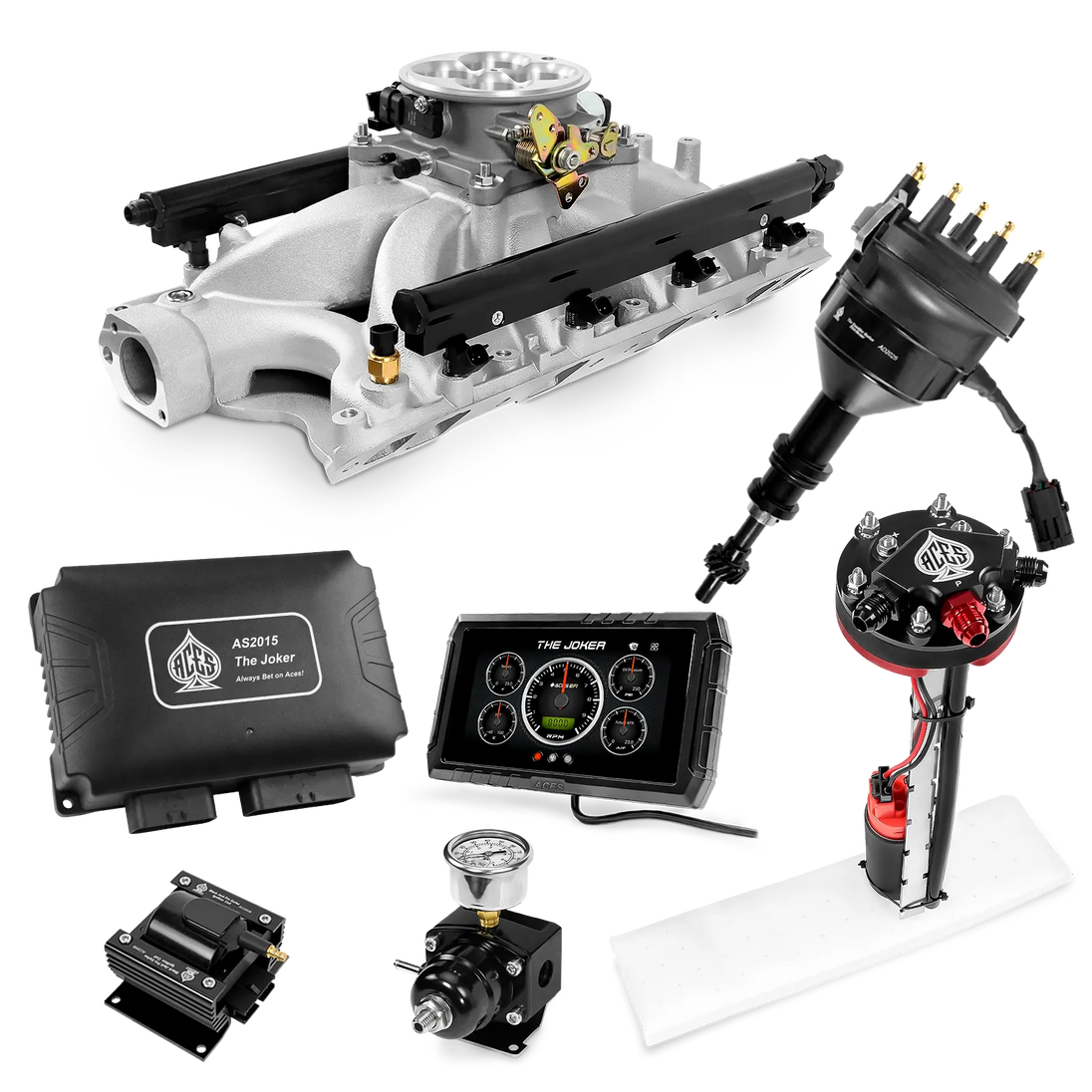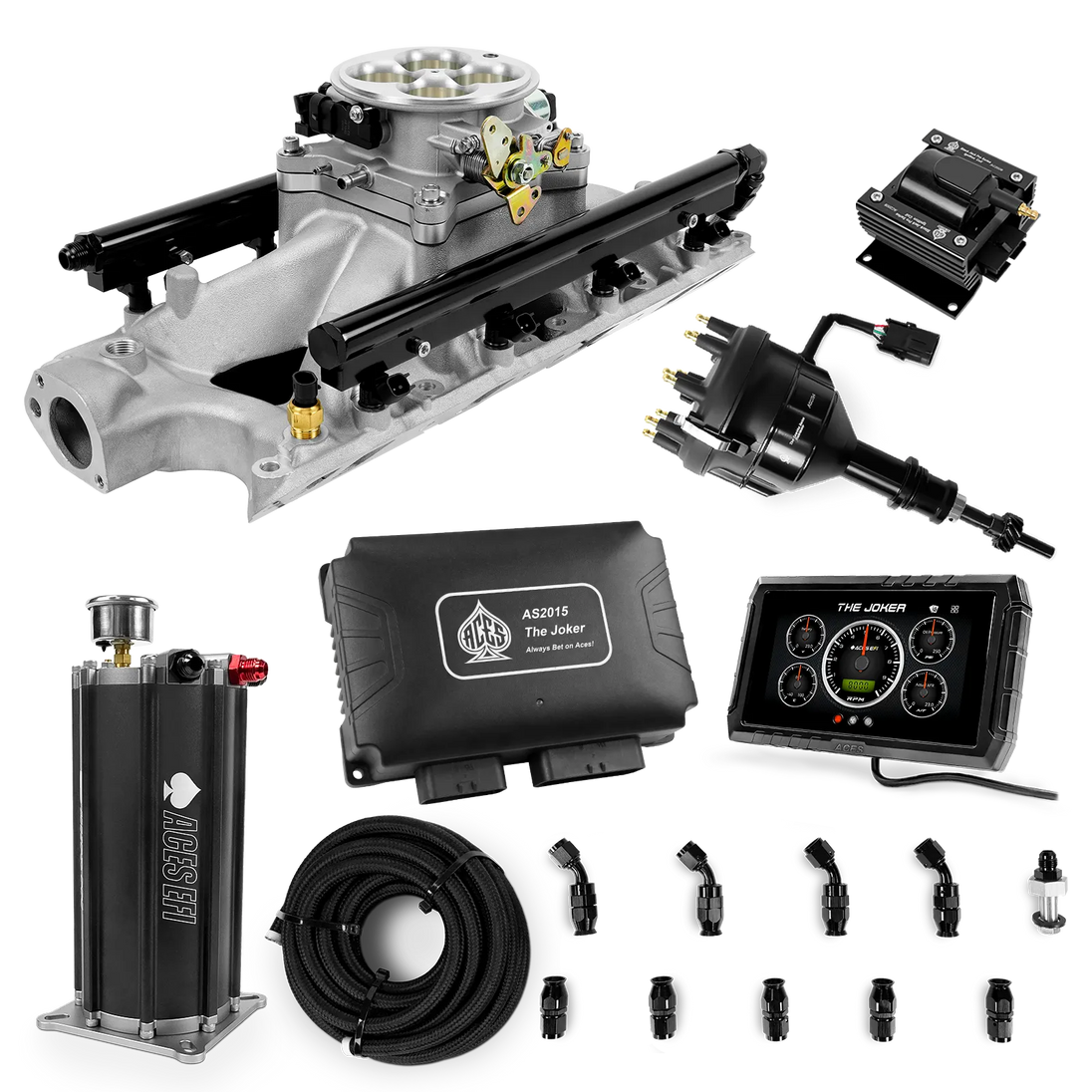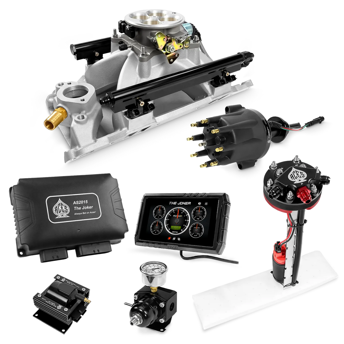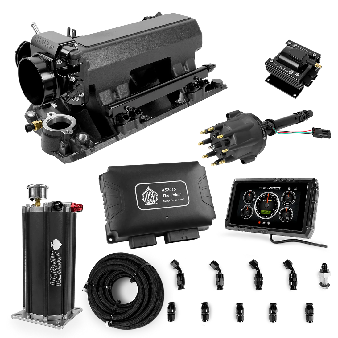 Take your high-performance or boosted V8 to the next level with ACES EFI’s Joker EFI/CDI—the most powerful Multi-Port EFI system on the market! The Joker is the only EFI system that integrates a Digital Capacitive Discharge Ignition (DCDI) system inside the ECU, delivering unmatched spark energy, precision, and control. Whether you're running high compression, forced induction, or aggressive racing setups, the Joker’s high-voltage CDI system ensures maximum power and efficiency.