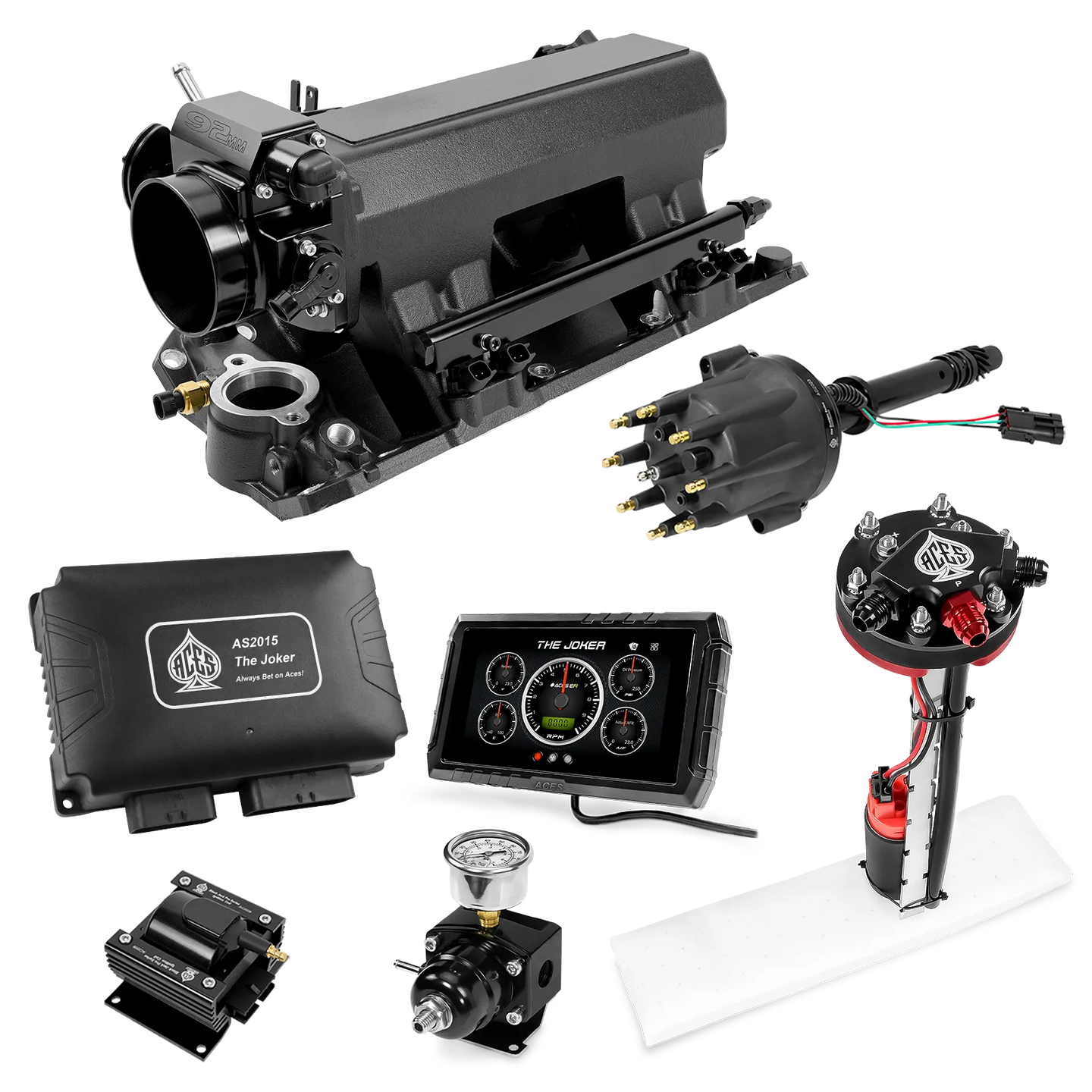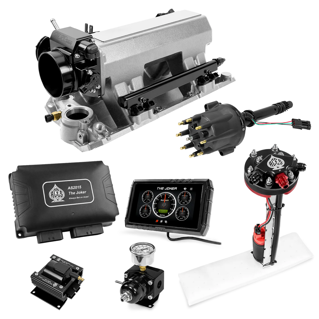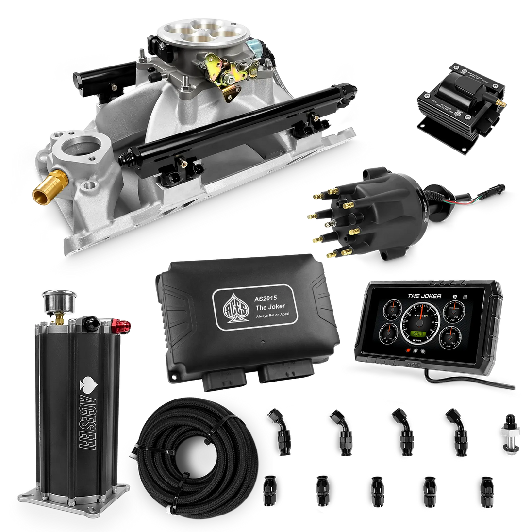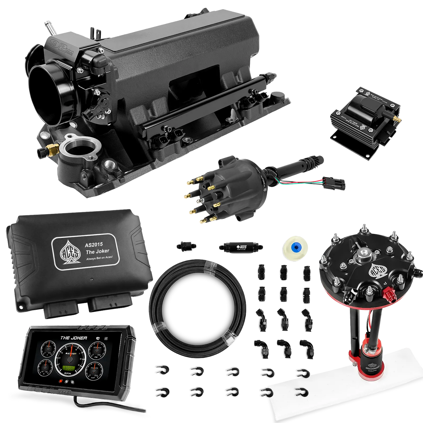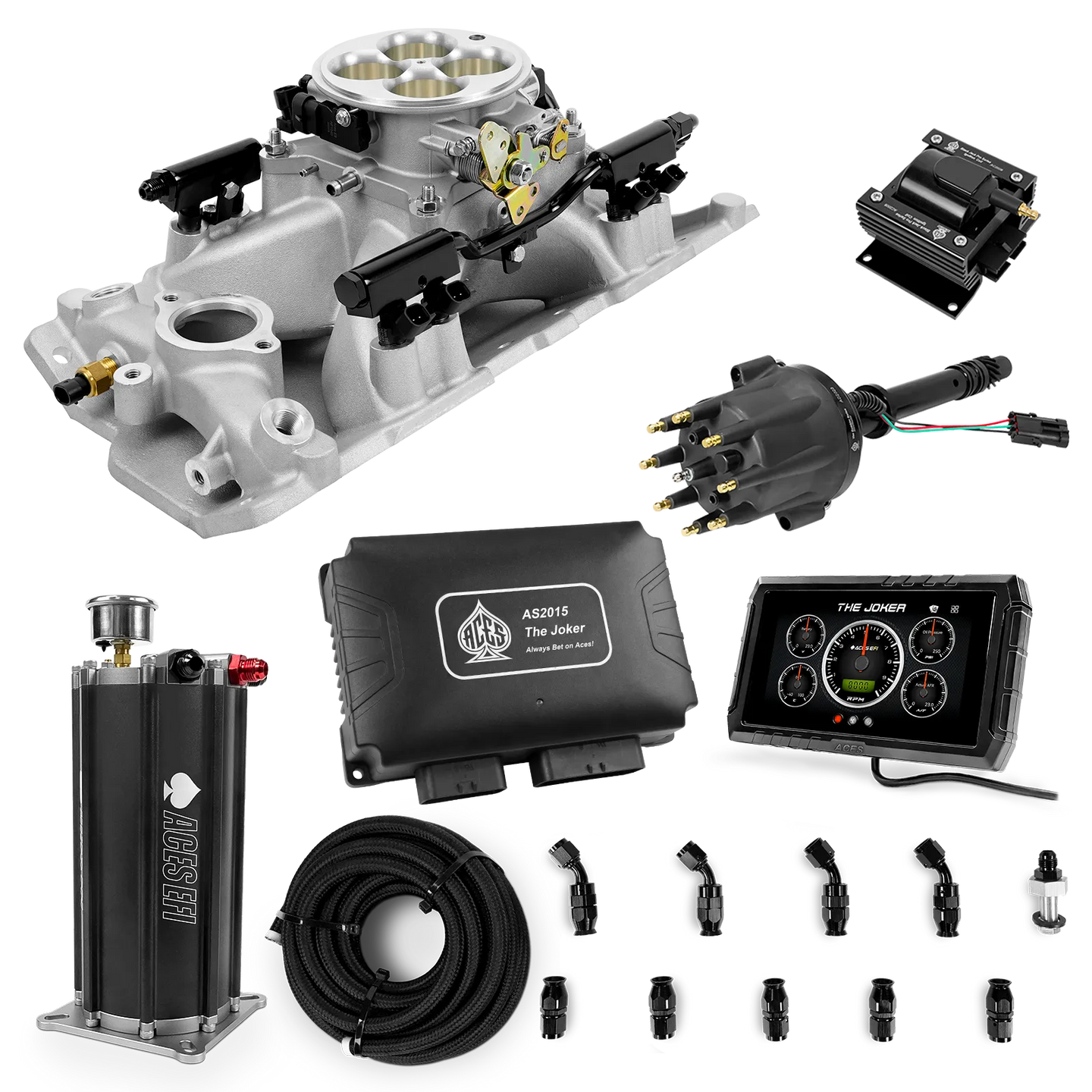 Take your high-performance or boosted V8 to the next level with ACES EFI’s Joker EFI/CDI—the most powerful Multi-Port EFI system on the market! The Joker is the only EFI system that integrates a Digital Capacitive Discharge Ignition (DCDI) system inside the ECU, delivering unmatched spark energy, precision, and control. Whether you're running high compression, forced induction, or aggressive racing setups, the Joker’s high-voltage CDI system ensures maximum power and efficiency.