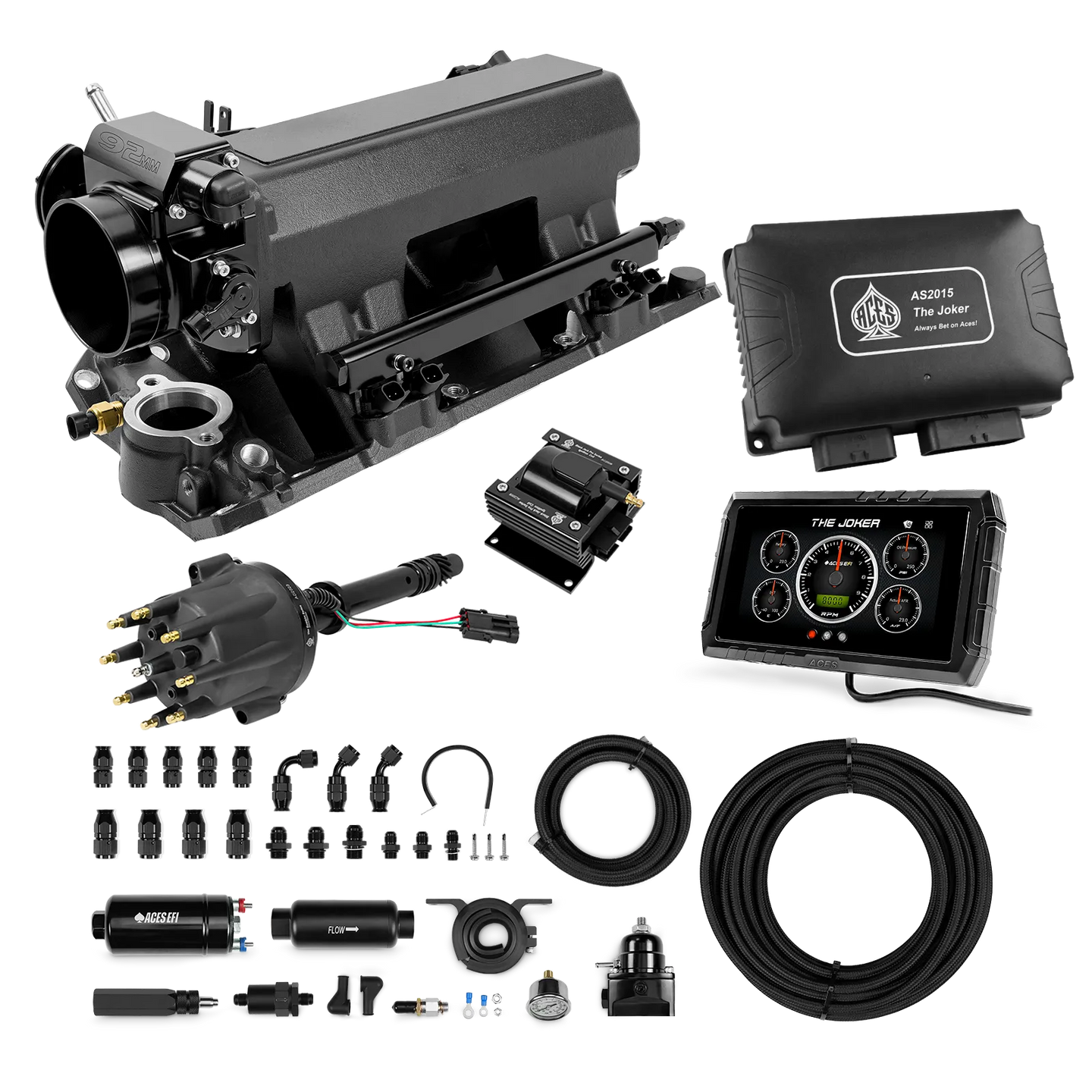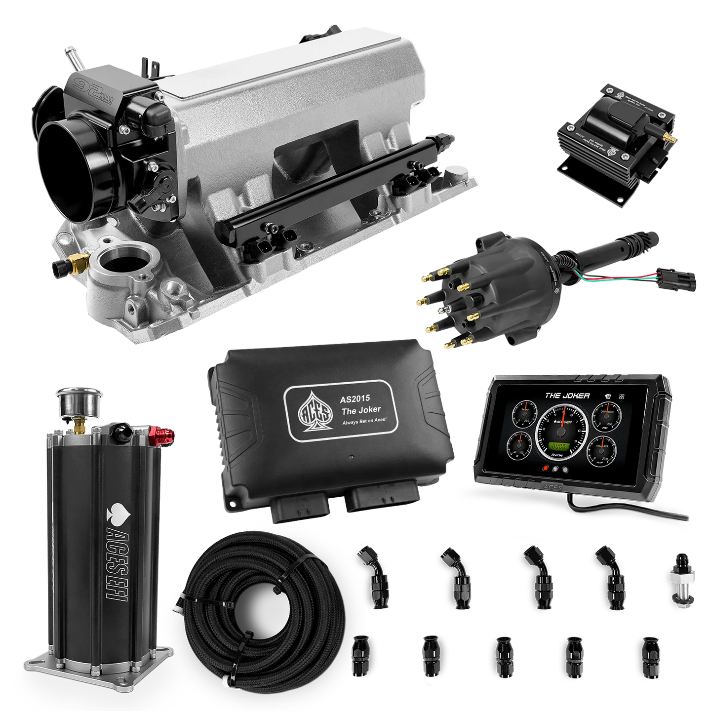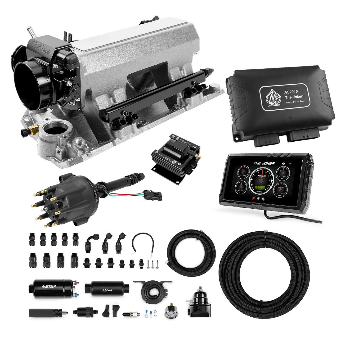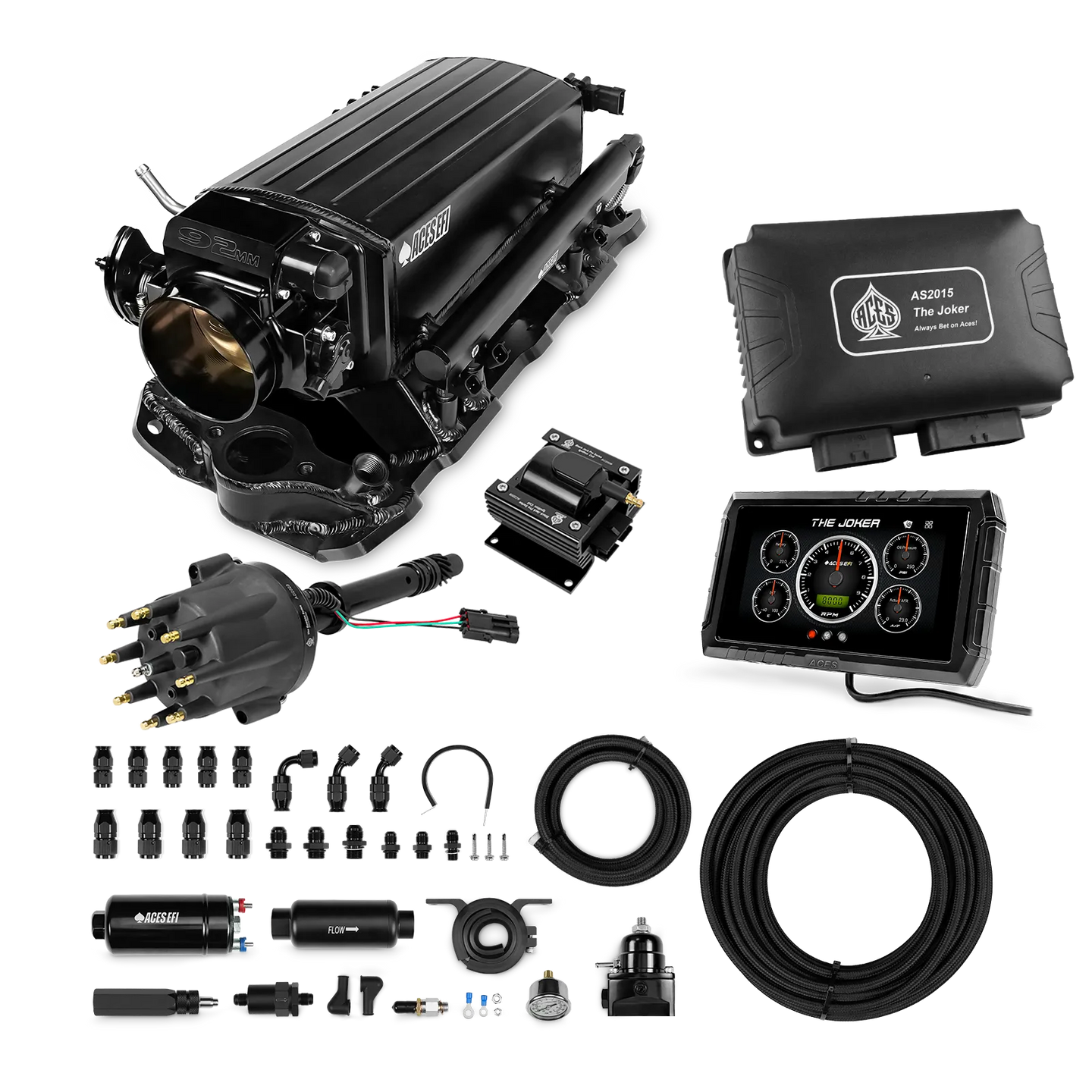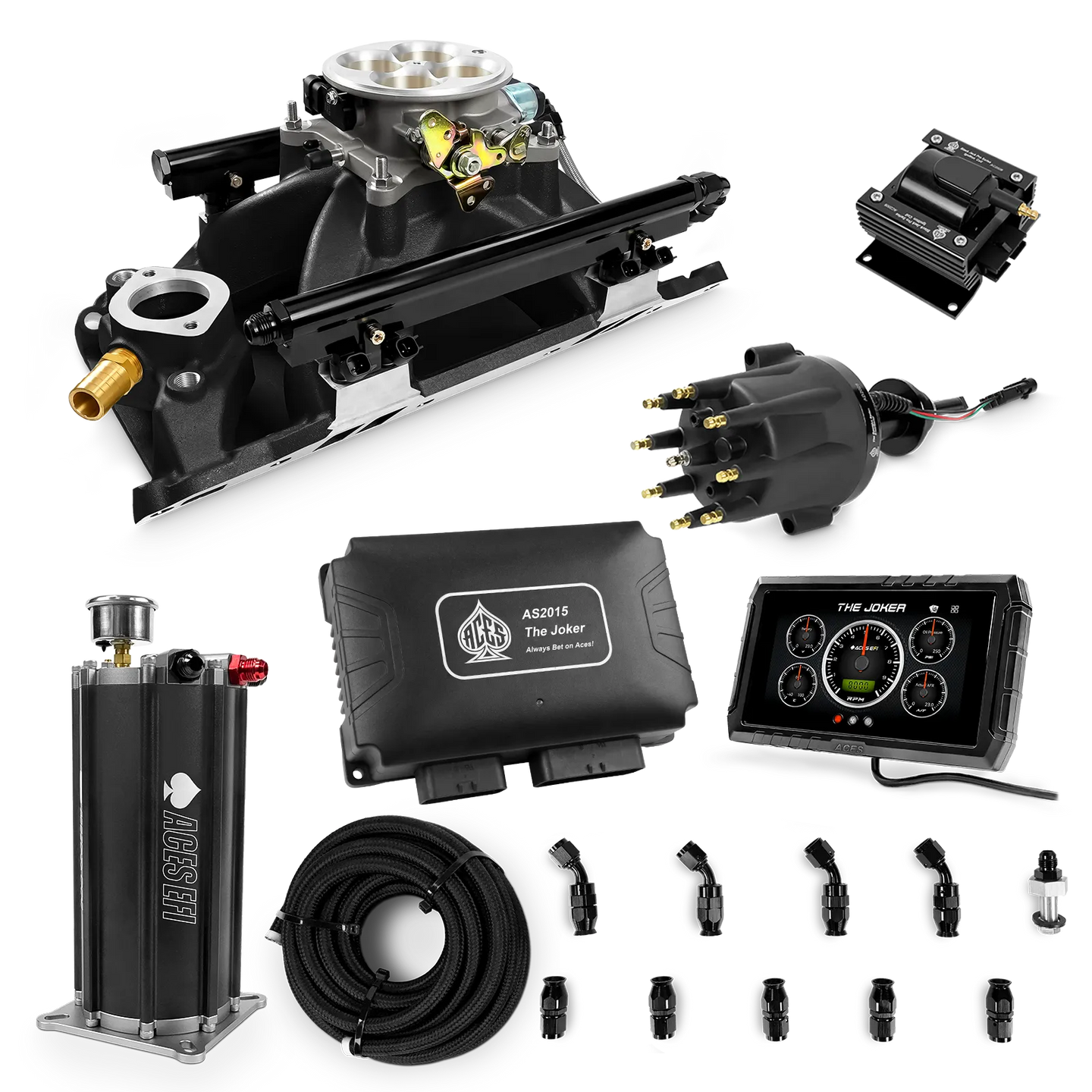 Take your high-performance or boosted V8 to the next level with ACES EFI’s Joker EFI/CDI—the most powerful Multi-Port EFI system on the market! The Joker is the only EFI system that integrates a Digital Capacitive Discharge Ignition (DCDI) system inside the ECU, delivering unmatched spark energy, precision, and control. Whether you're running high compression, forced induction, or aggressive racing setups, the Joker’s high-voltage CDI system ensures maximum power and efficiency.
