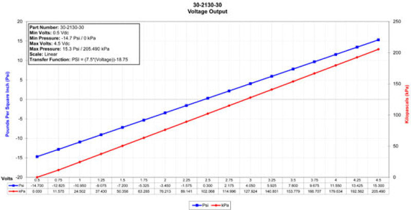 30 PSIa or 2 Bar Stainless Sensor Kit. Stainless Steel Sensor Body. 1/8" NPT Male Thread. Includes: 30 PSIa or 2 Bar Stainless Sensor, Connector, Pins, 1/8" NPT to -4 Adapter & 1/8" NPT to 3/16" Barb Adapter