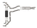 This cat-back exhaust system is constructed of 2-1/2 IN - 3 IN mandrel-bent 304 stainless steel tubing for maximum strength and durability. This system features a high-flow stainless steel muffler, producing a deep sound. This system produces a deep sound unleashing all available horsepower and torque. Utilizing factory style hangers this system is a direct bolt-on system, which requires no cutting or modifications for a hassle-free installation. A mitered merge x-pipe is used to balance and evenly distribute exhaust pulses traveling through the exhaust system, minimizing exhaust drone and maximizing scavenging. This system incorporates factory style pneumatic exhaust valves. The valves direct the flow of exhaust gases and open passageways to bypass the muffler in performance mode. State-of-the-art computer-aided design technology is utilized for precise vehicle fitment. 100% MIG-Welded for race-proven strength and durability.