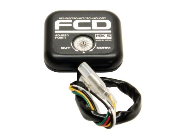 The HKS FCD is an electronic device developed to properly raise the factory fuel cut level on factory turbocharged vehicles. As modifications are made to optimize engine performance, the factory fuel cut is often triggered by higher boost levels which activate a fuel delivery cut-off as a failsafe procedure. Symptoms of fuel cut are hesitation, bogging, and/or illumination of diagnostic indicators.