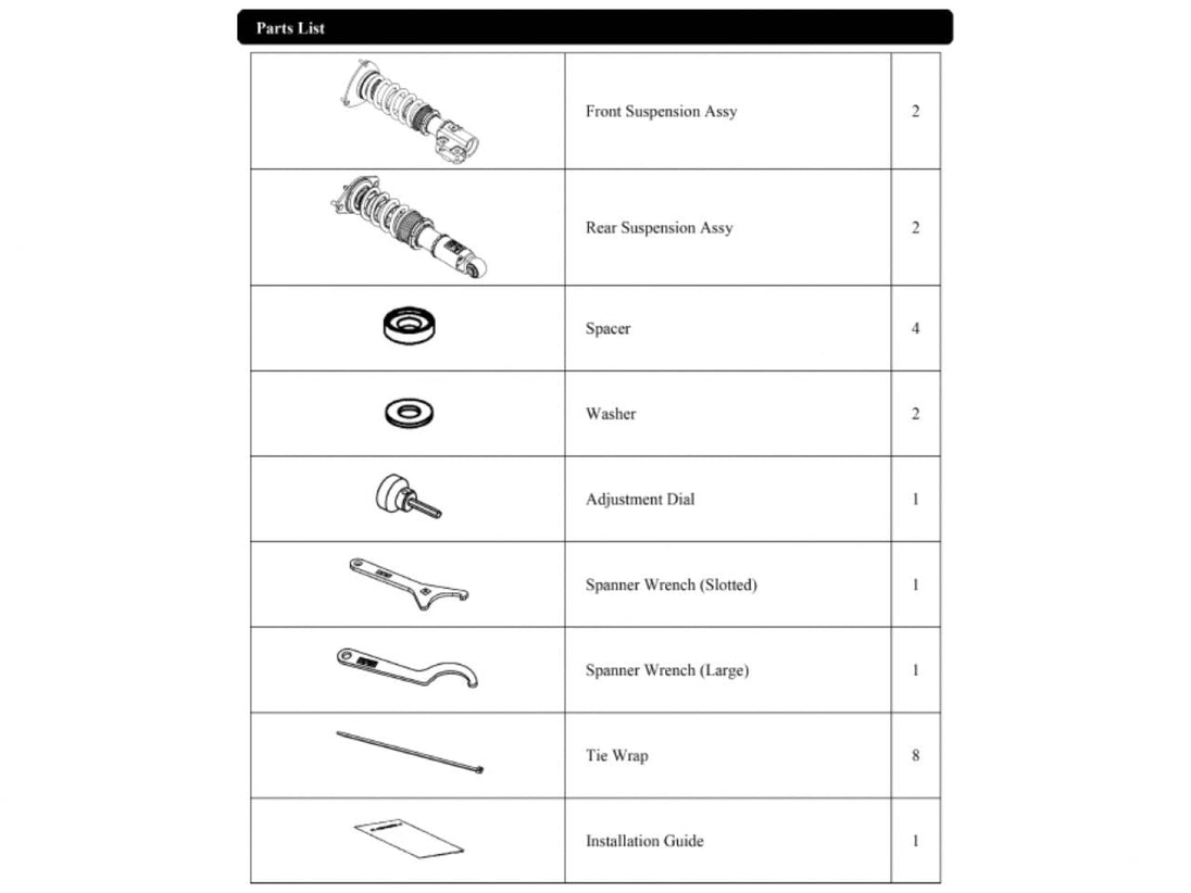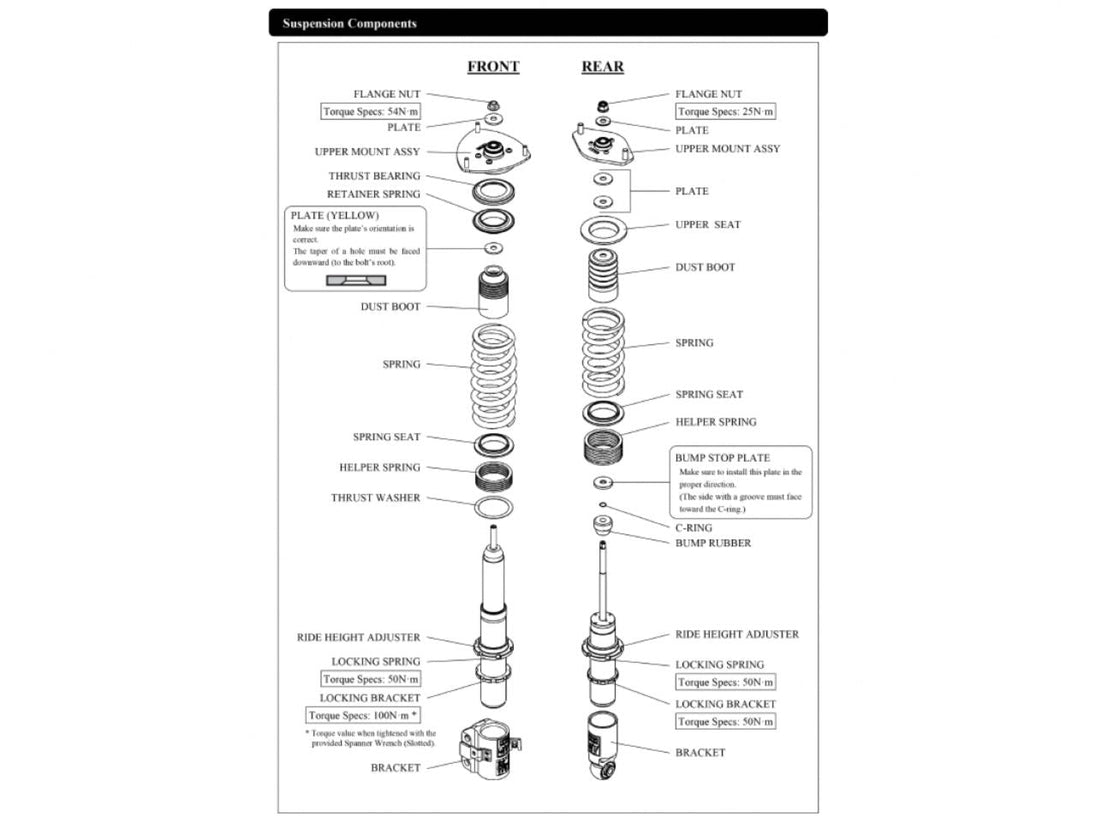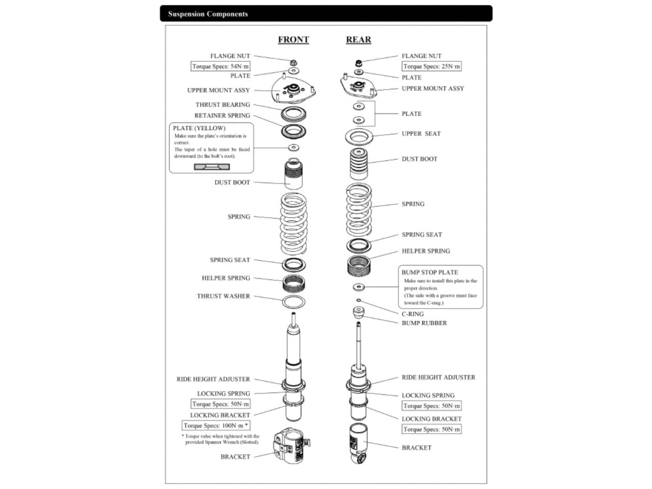 Damper oil leakage or any other problems caused by low ride height setting from the factory setting will void the warranty of the product.)