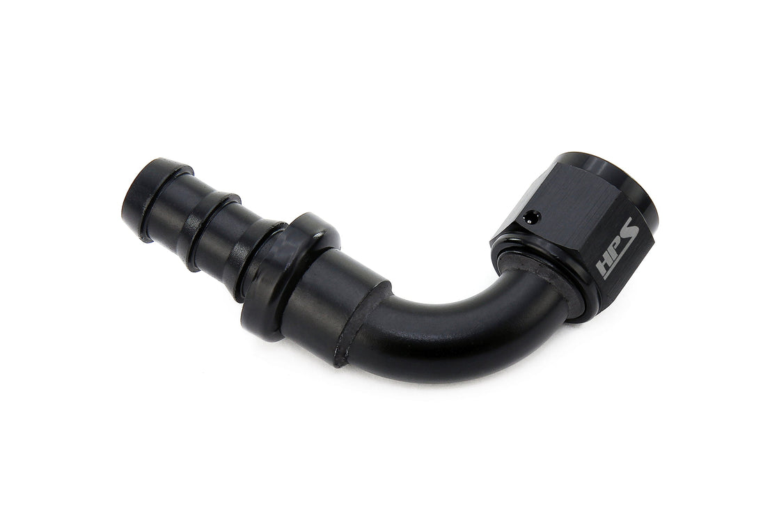 HPS Performance Straight/ 30-180 Degree 4-12 Push-on Hose End to AN Female, Aluminum, Black