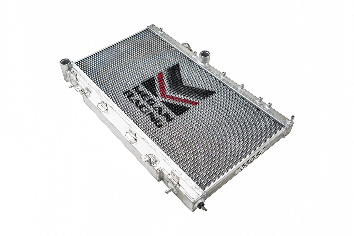 This is a cost effective upgrade which can ultimately save an engine during competition or spirited driving. Often times, a temperature drop of twenty degrees or more will be noticed when using an aluminum radiator. Also included is a 1.1 BAR radiator cap.