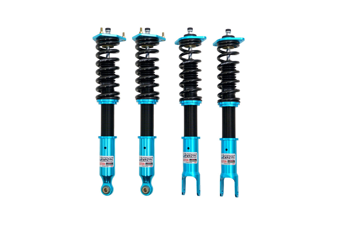 Megan Racing EZII Series Suspension Systems are fully adjustable coilover systems which do not break the bank. With it's full length adjustable design, the vehicle's ride height can be adjusted without affecting the shock stroke ensuring a retained ride quality at nearly any height. Monotube internal shock construction separates the oil and hi pressured Nitrogen gas chamber preventing aeration. This allows for immediate shock response and damping consistency. 15-click damping force adjustability will also allow the user to fine tune the ride stiffness and response to his or her preference.