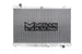 Megan Racing Radiators are comprised completely of aluminum. From the tanks to the primary core. Aluminum tanks are a great upgrade over the plastic usually found on factory radiators which are known to crack and leak especially as they age. The larger heat exchanging core is not only more efficient at transferring heat from the coolant, but also increases total coolant carrying capacity.