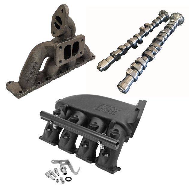 VW MKIV GTI T3 Twin Scroll Top Mount Flange Turbocharger Exhaust Manifold + Cast Aluminum Intake Manifold + 252 / 260 High Performance Camshaft set