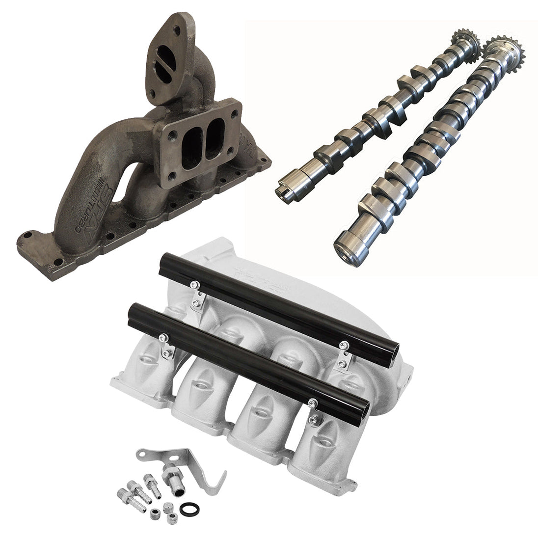 VW MKIV GTI T3 Twin Scroll Top Mount Flange Turbocharger Exhaust Manifold + Cast Aluminum Intake Manifold + High Performance Camshaft set