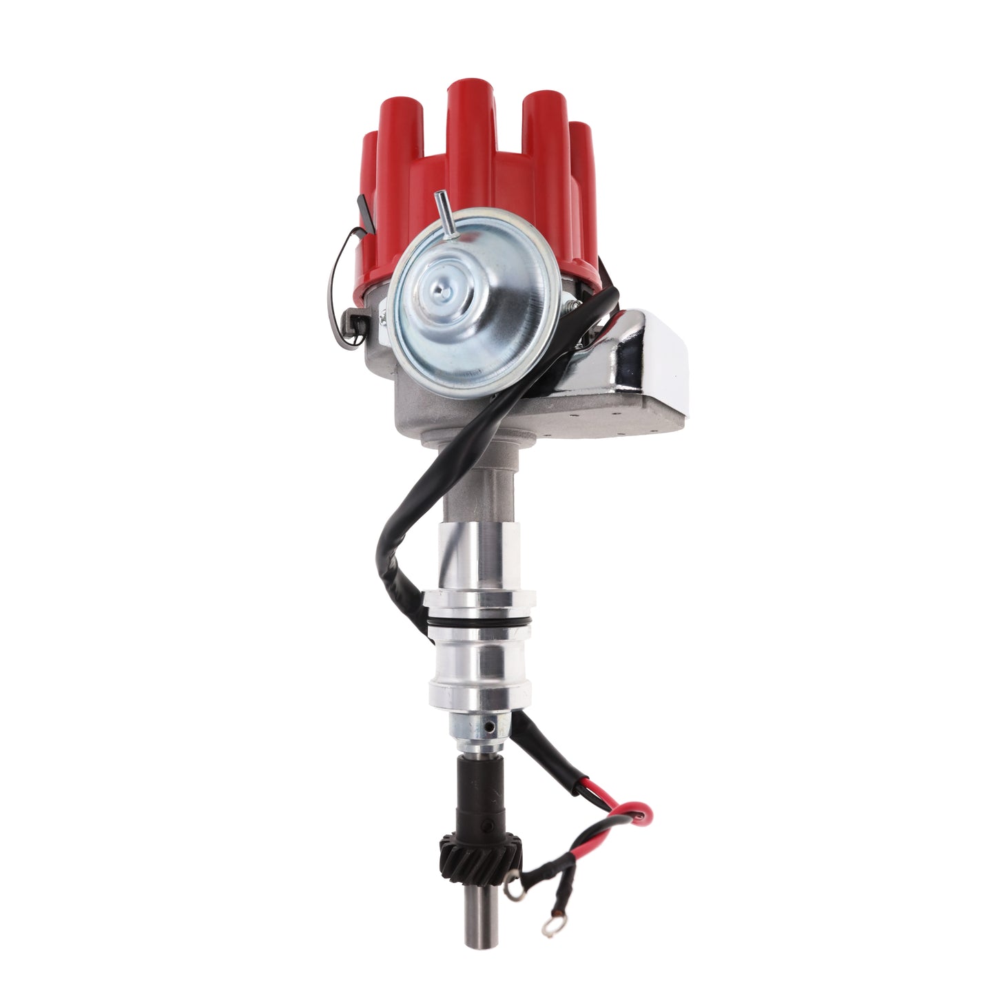 TSP Ready to Run Distributor offers performance and convenience at a great price. It features a CNC-machined billet aluminum body and hardened steel shaft, with a sealed ball bearing on top and a sintered steel bushing on the bottom. Its easy-to-change module means you won?t need to use an external ignition box, and its small size will fit most applications. It has a clip-on cap with solid brass terminals and a color-matched wire retainer. Vehicle Specific