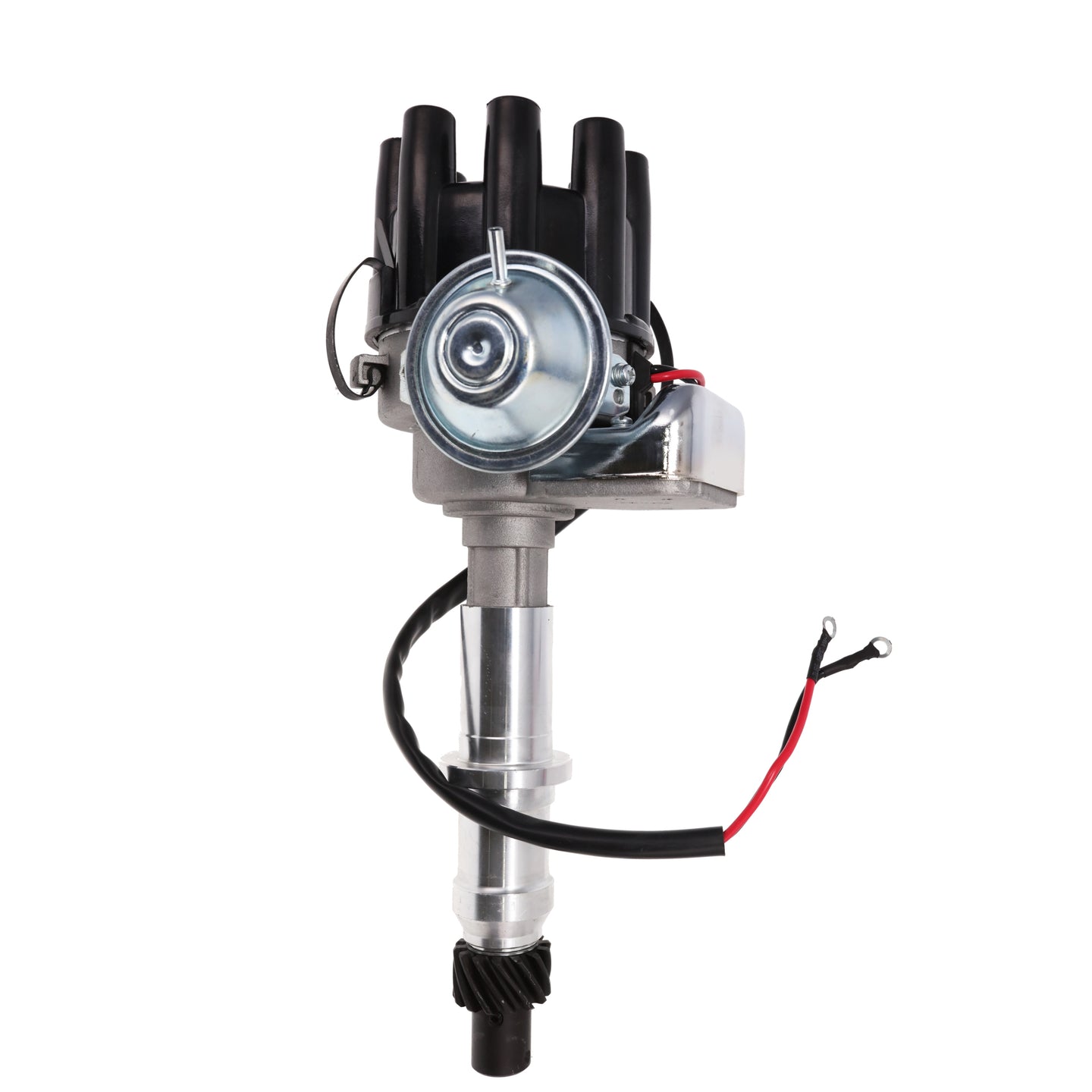 TSP Ready to Run Distributor offers performance and convenience at a great price. It features a CNC-machined billet aluminum body and hardened steel shaft, with a sealed ball bearing on top and a sintered steel bushing on the bottom. Its easy-to-change module means you won?t need to use an external ignition box, and its small size will fit most applications. It has a clip-on cap with solid brass terminals and a color-matched wire retainer. Vehicle Specific